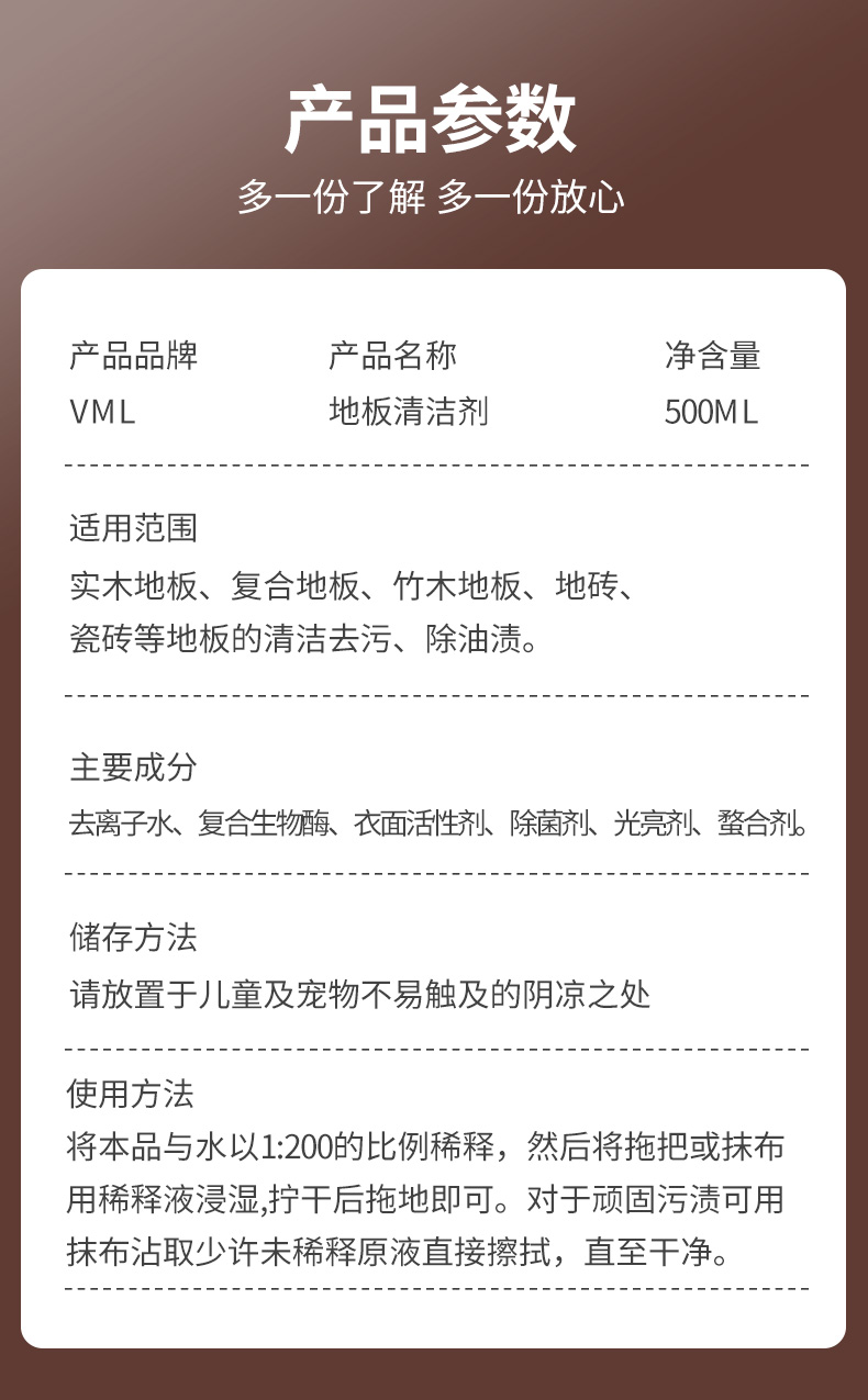 【家用必囤 清洁神器】VML地板清洁剂 瓷砖拖地 yi菌专用清洗剂 家用去污垢神器 清洁液