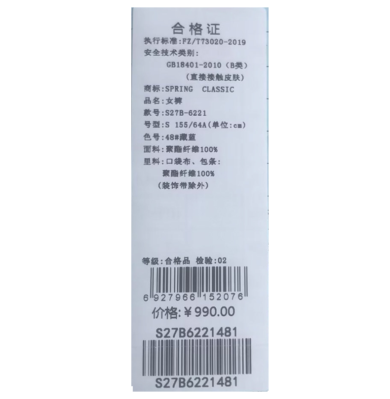 西贝伦长裤S27B6221