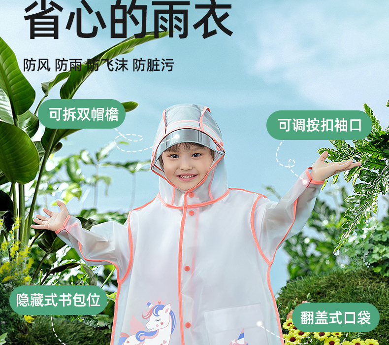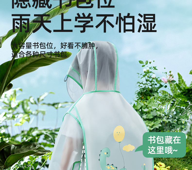 贝肽斯儿童雨衣男童女童宝宝防水防雨服幼儿园小学生上学专用雨披