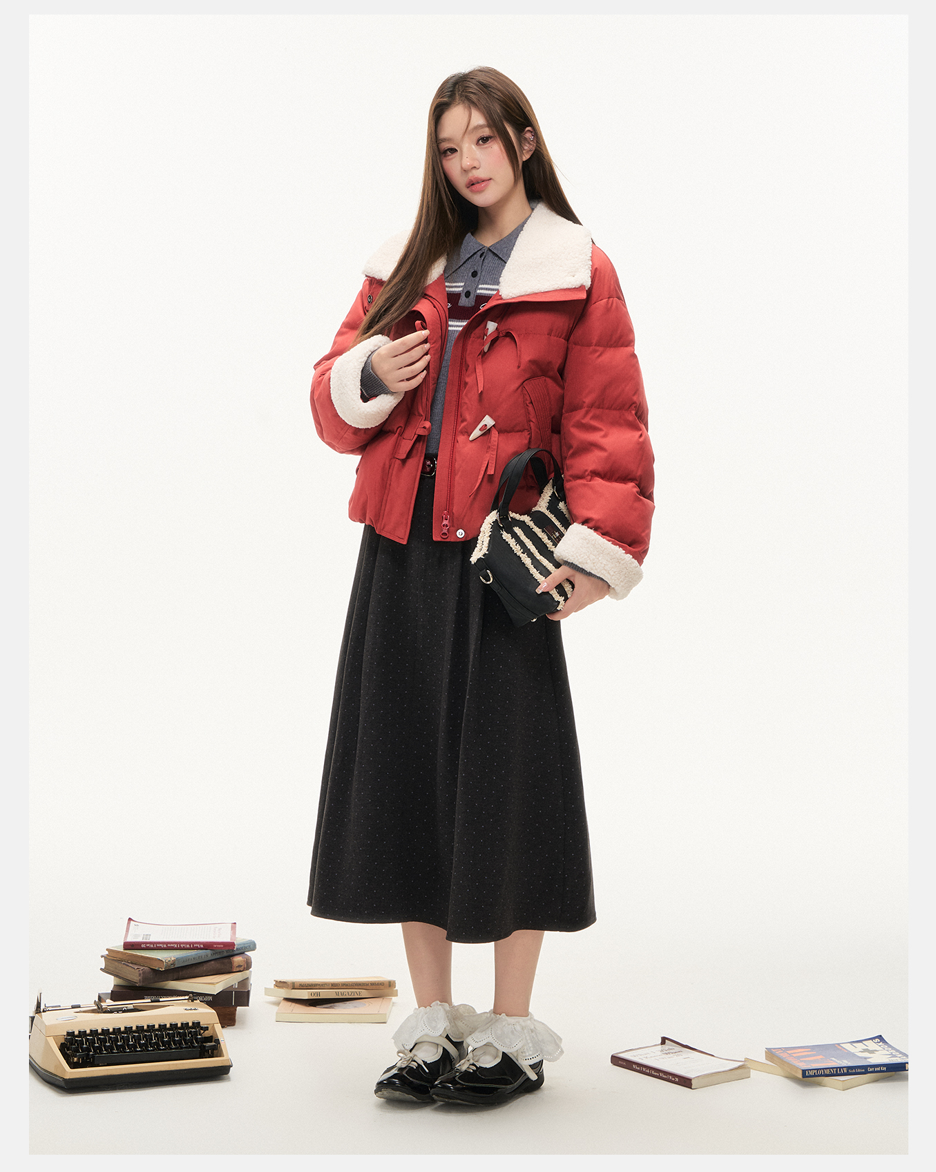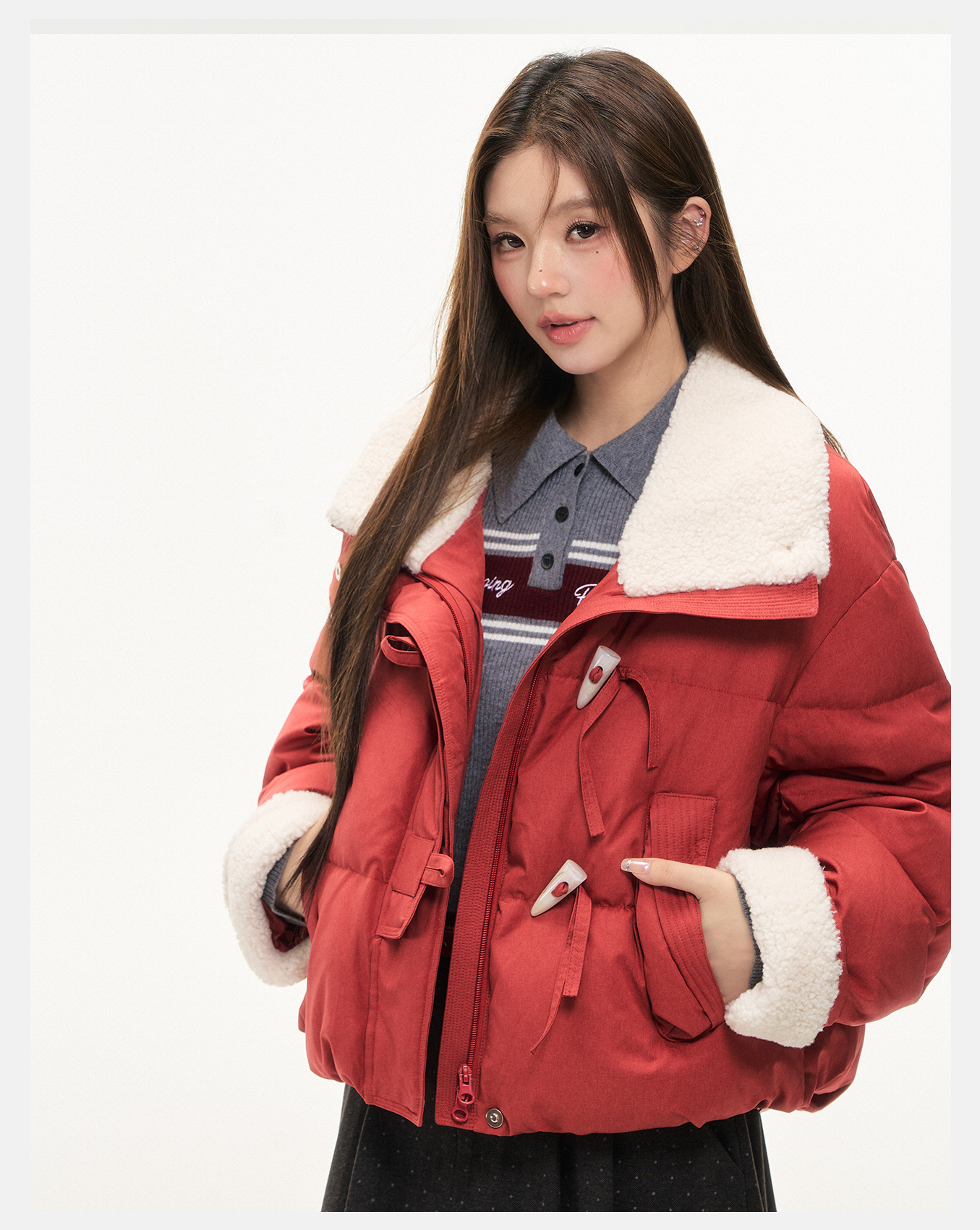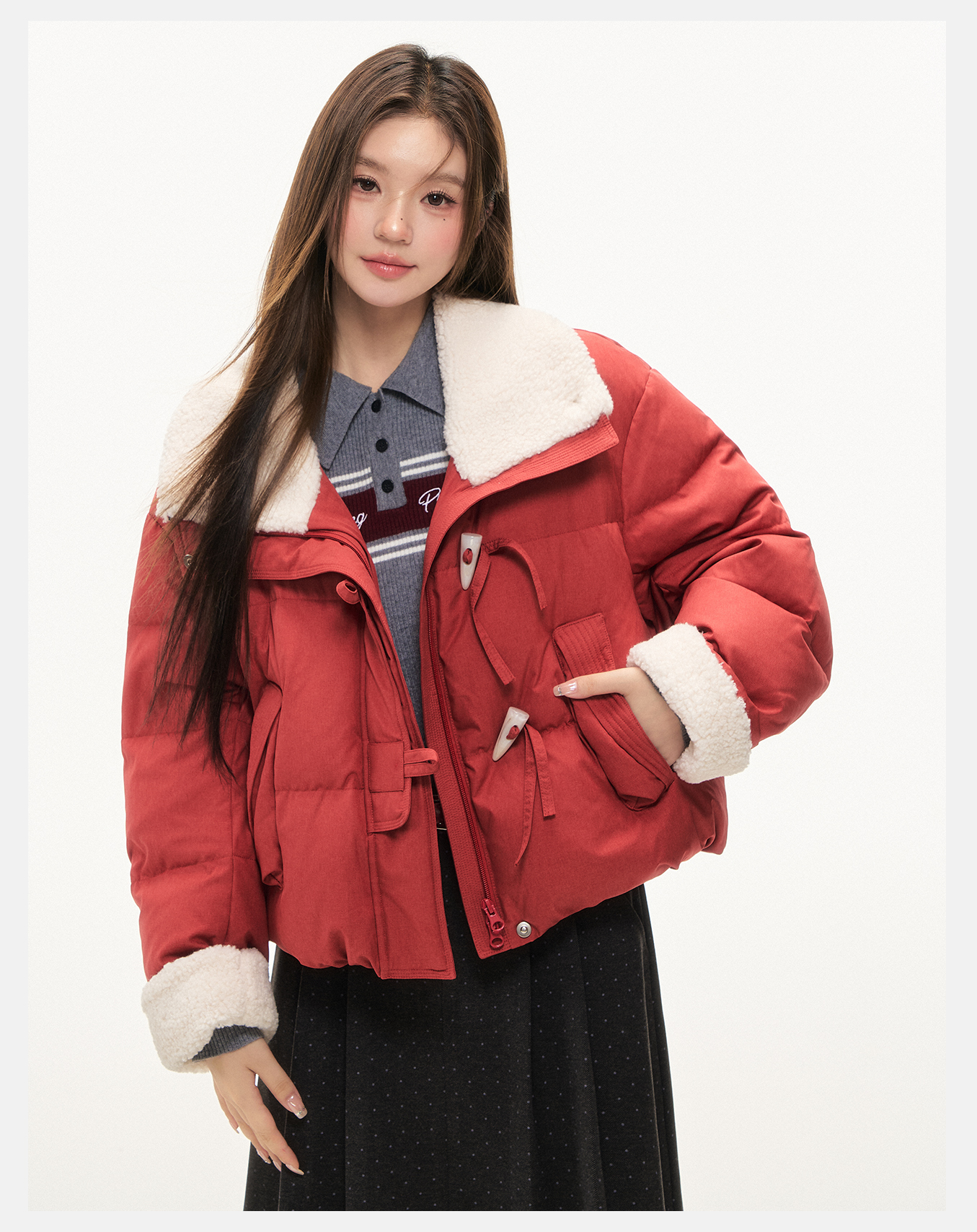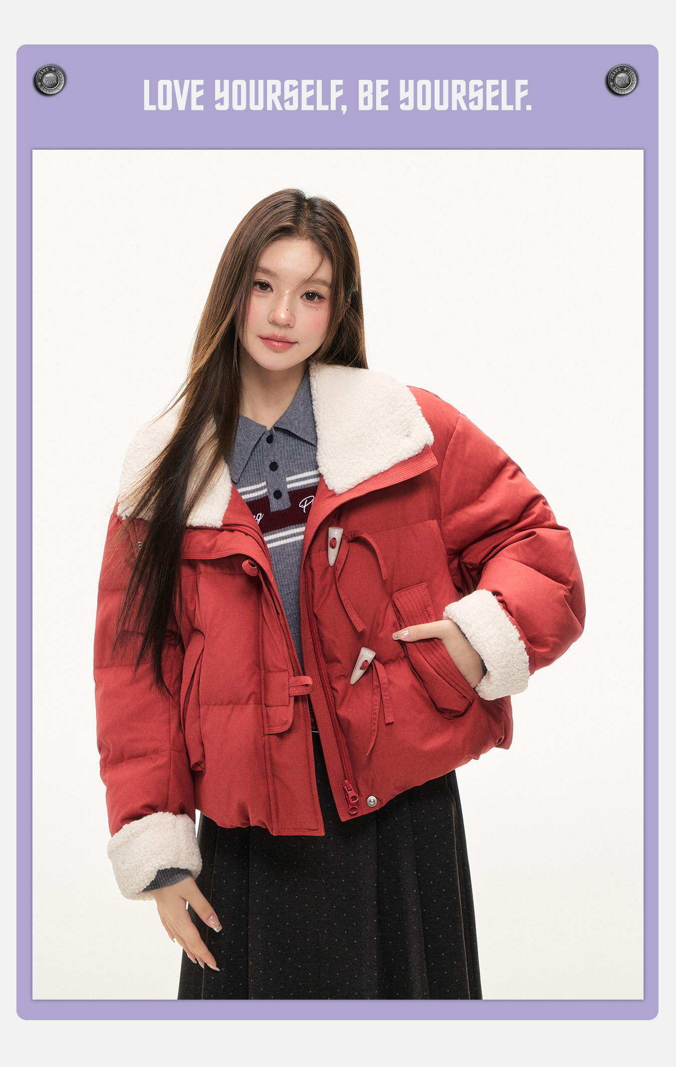 P&X设计师女装2025冬季时尚翻领短款羽绒服825424073 红色