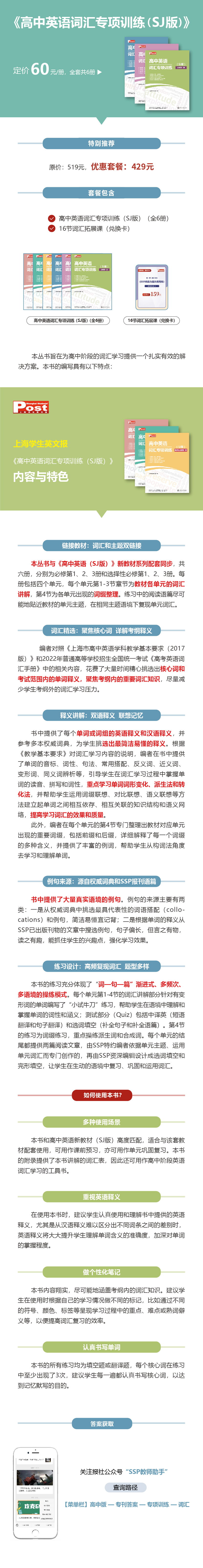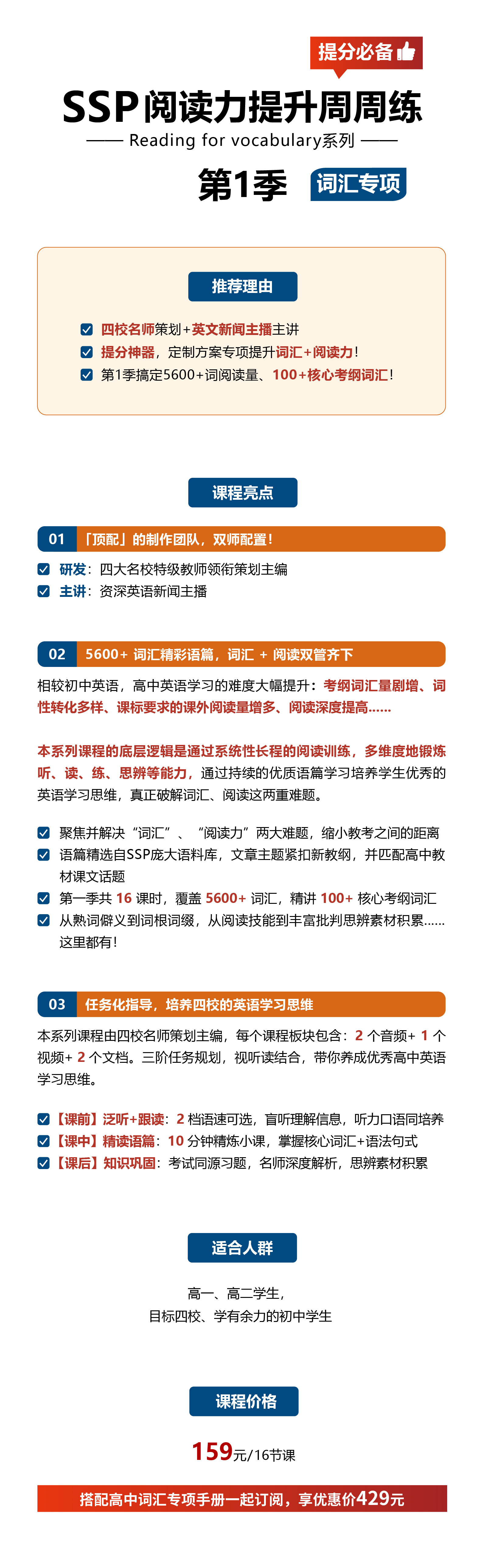 《SSP 阅读力提升周周练》第1季词汇专项为单独的词汇课程,具体内容请参见详情页。