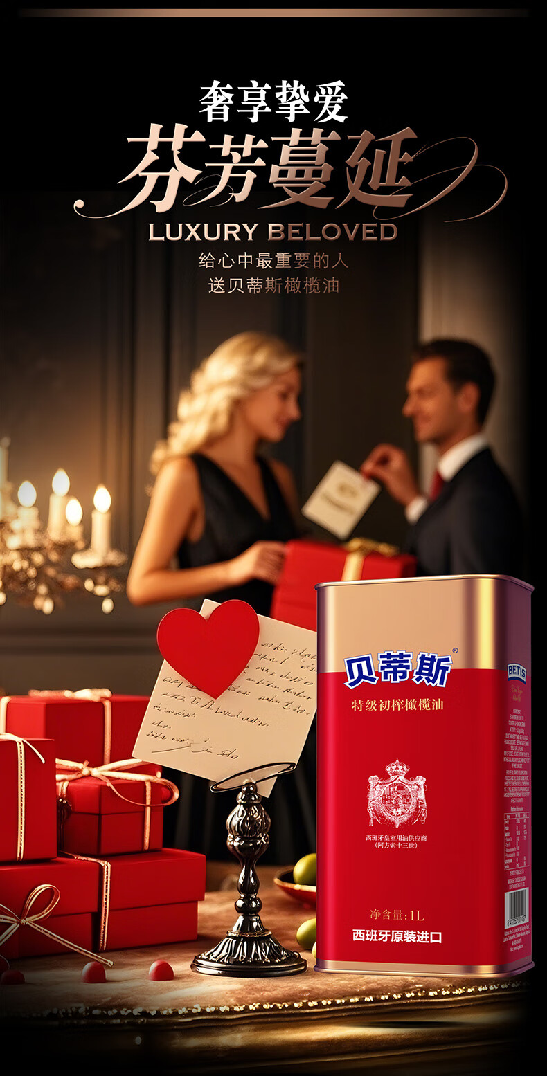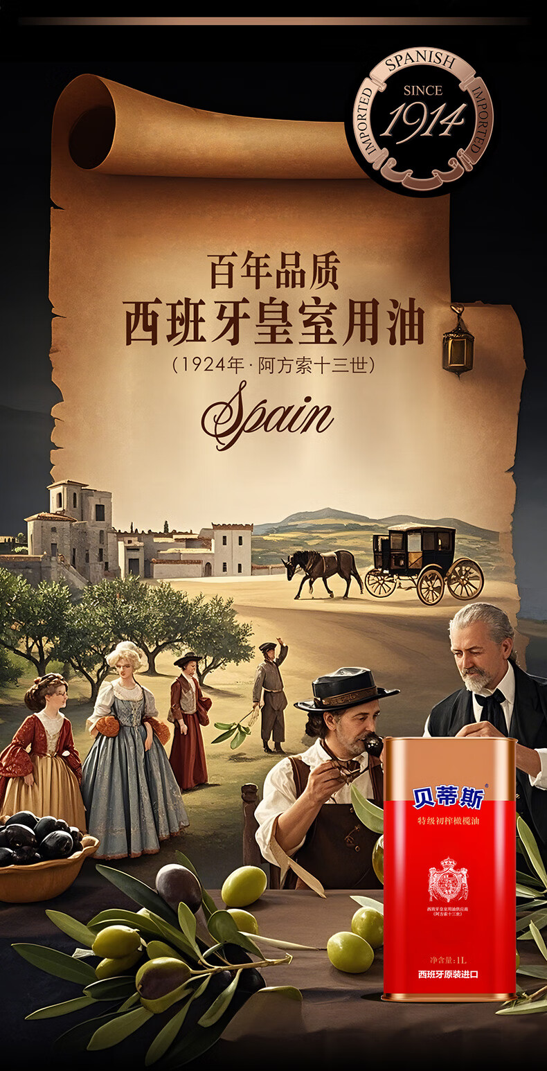 贝蒂斯(BETIS)特级初榨橄榄油 食用油 西班牙原装进口 1L/罐 热炒凉拌食用油