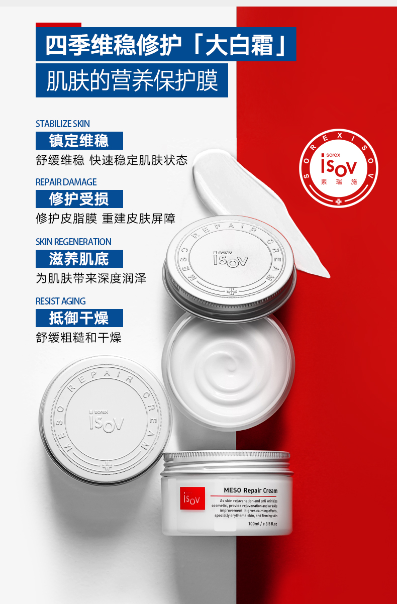 【素瑞施】Sorex ISOV/素瑞施滋润舒缓修护面霜(大白霜修护敏感泛红受损屏障保湿维稳肌肤面霜)