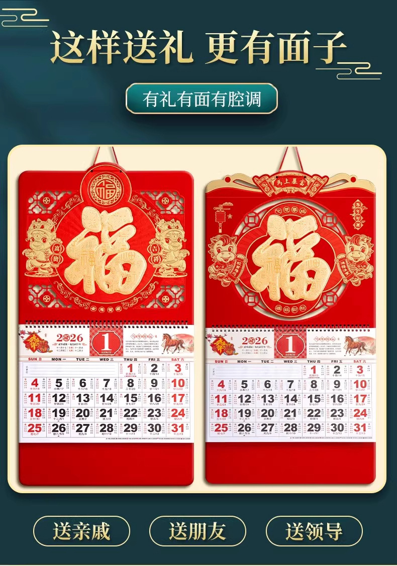 【新款马年挂历】新款福马贺岁台历日历月历福字年历马年家用挂壁 商品图8