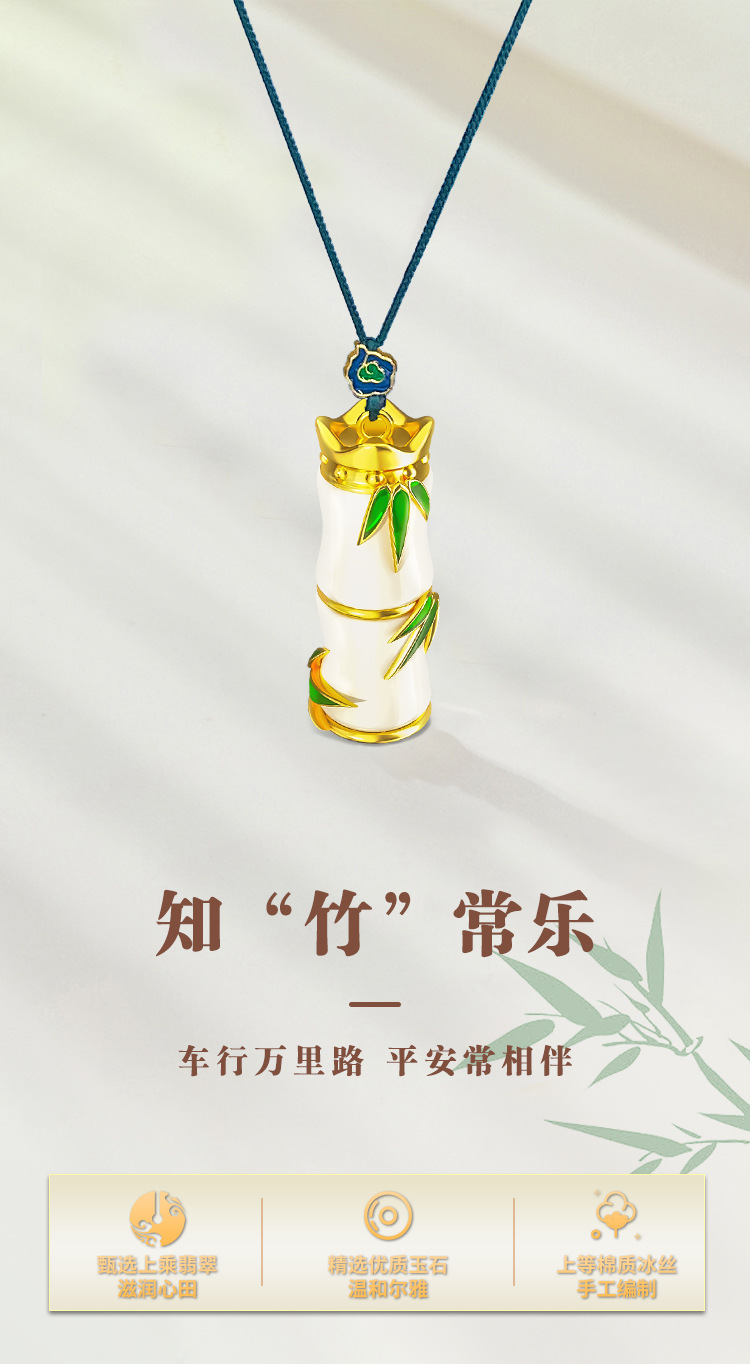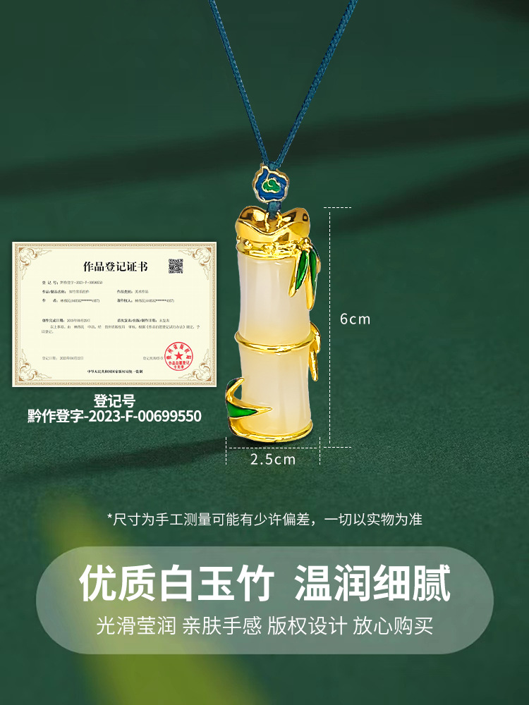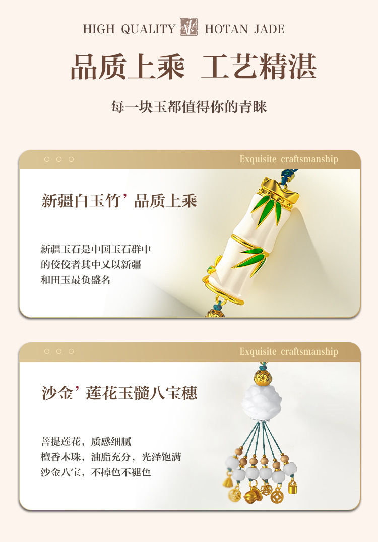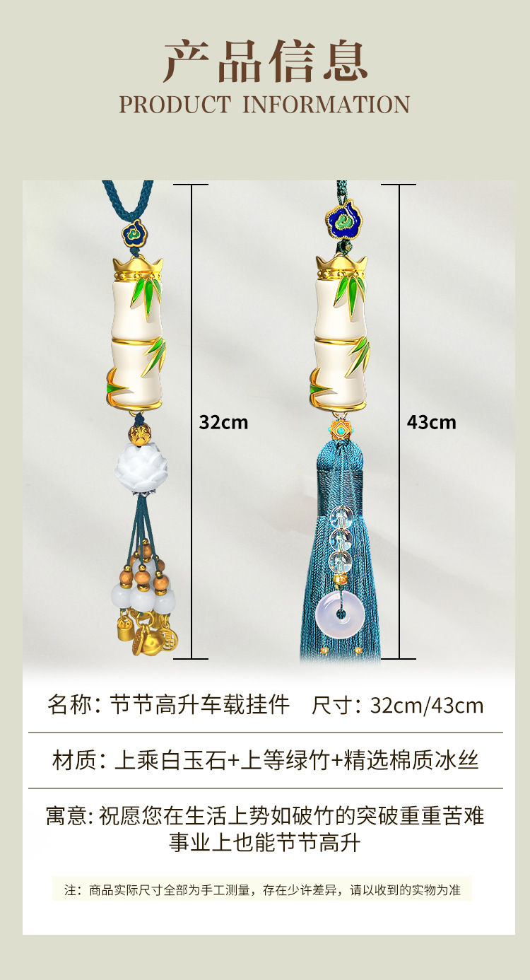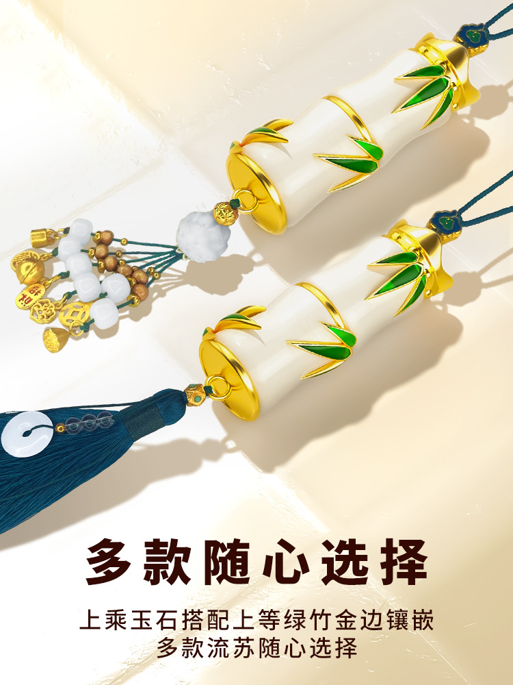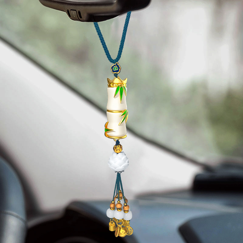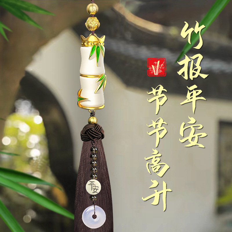 【汽车挂件】玉竹车载吊坠 古风车挂一路平安 高档高级感 白玉石车内挂饰 父亲节礼物