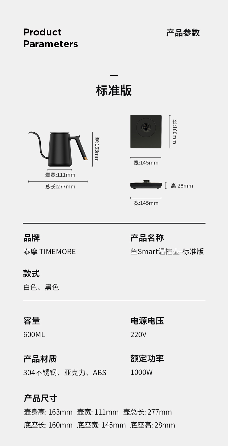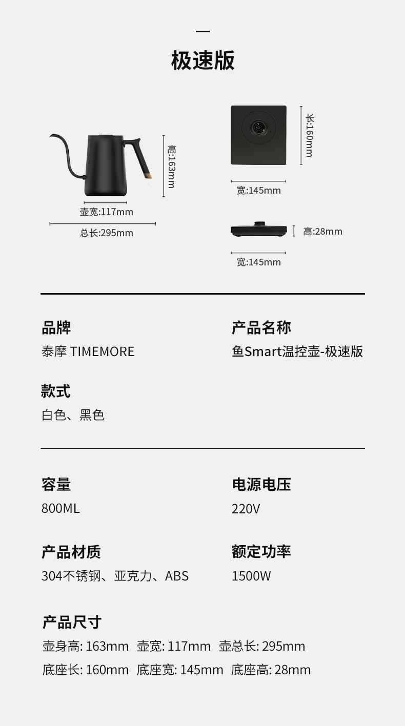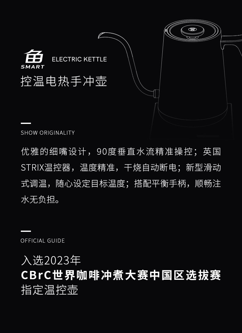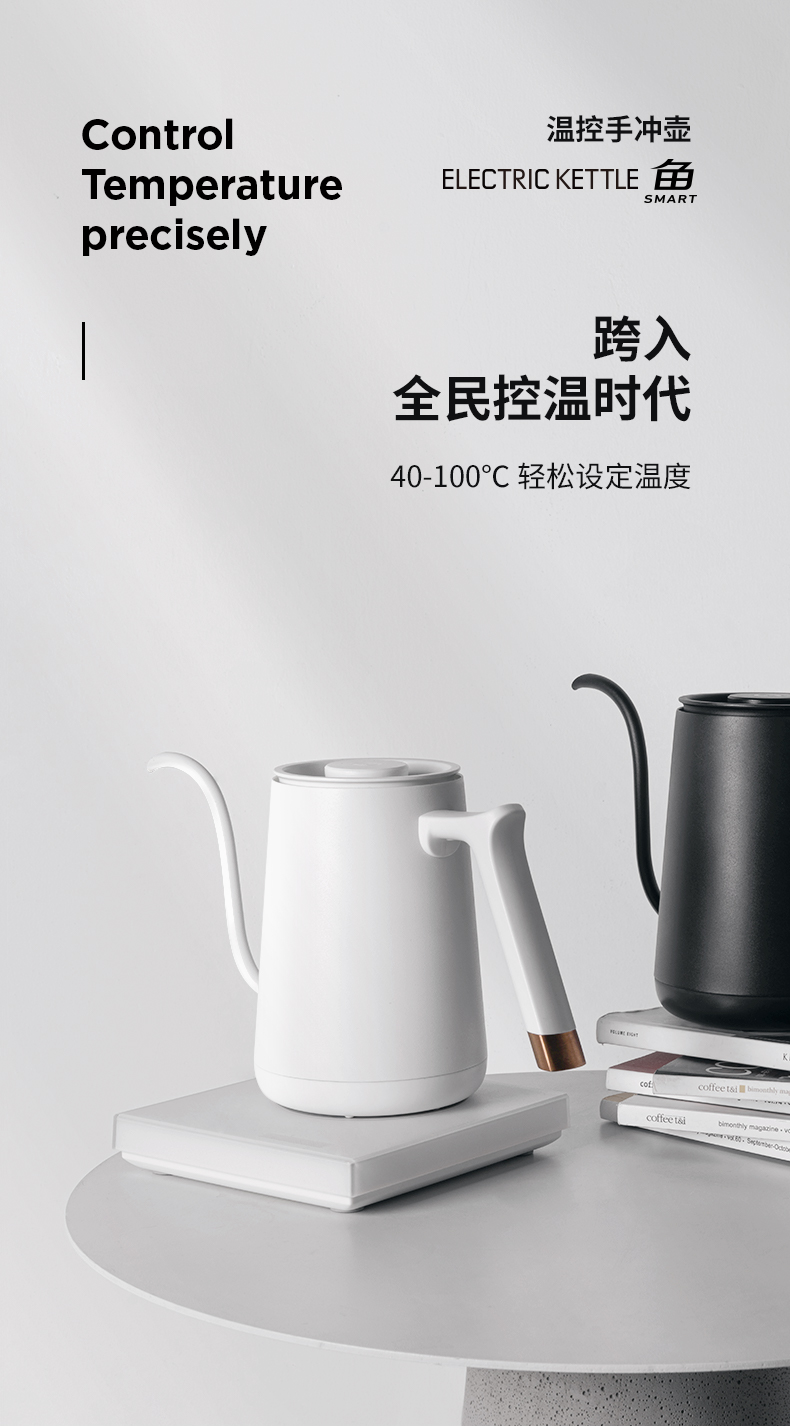 泰摩鱼SMART咖啡温控壶 家用细口手冲咖啡壶不锈钢水壶泡茶控温壶