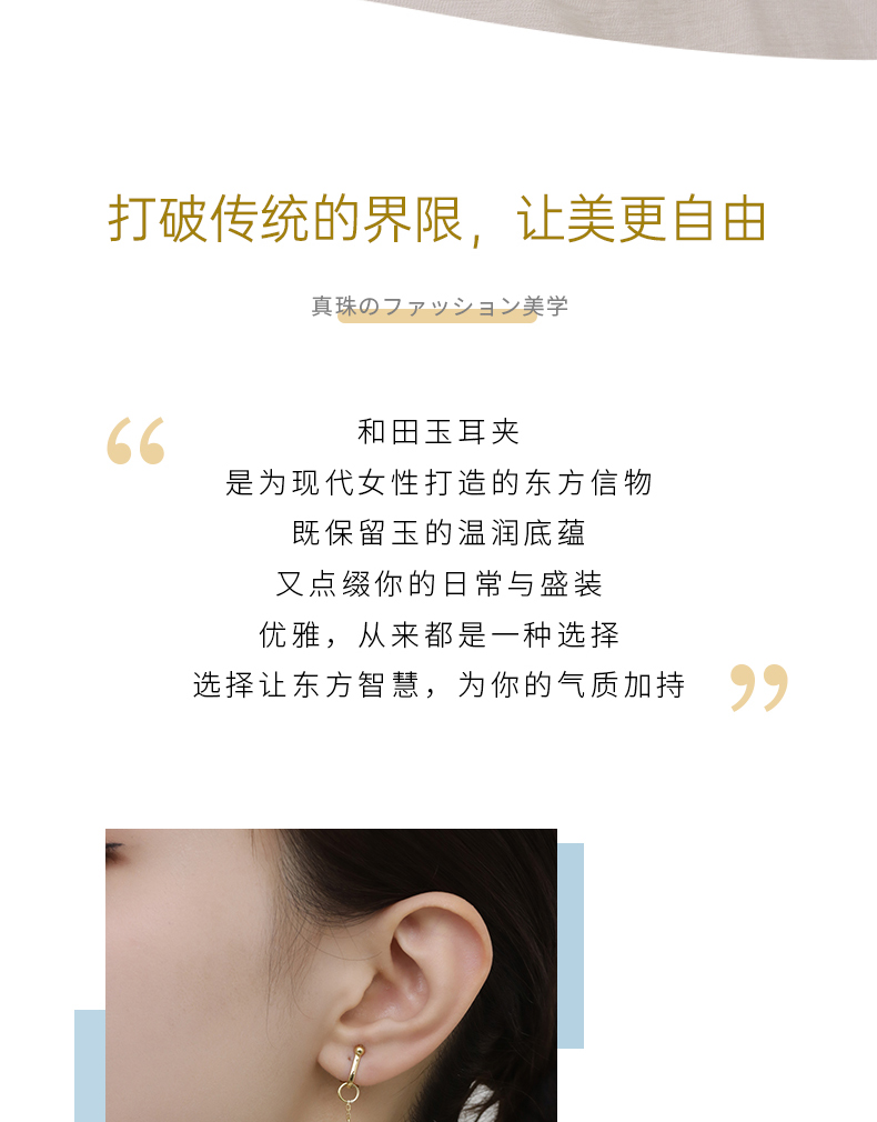 【天猫同款】悦甄 18k金南洋金珍珠线条耳夹