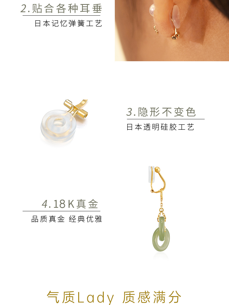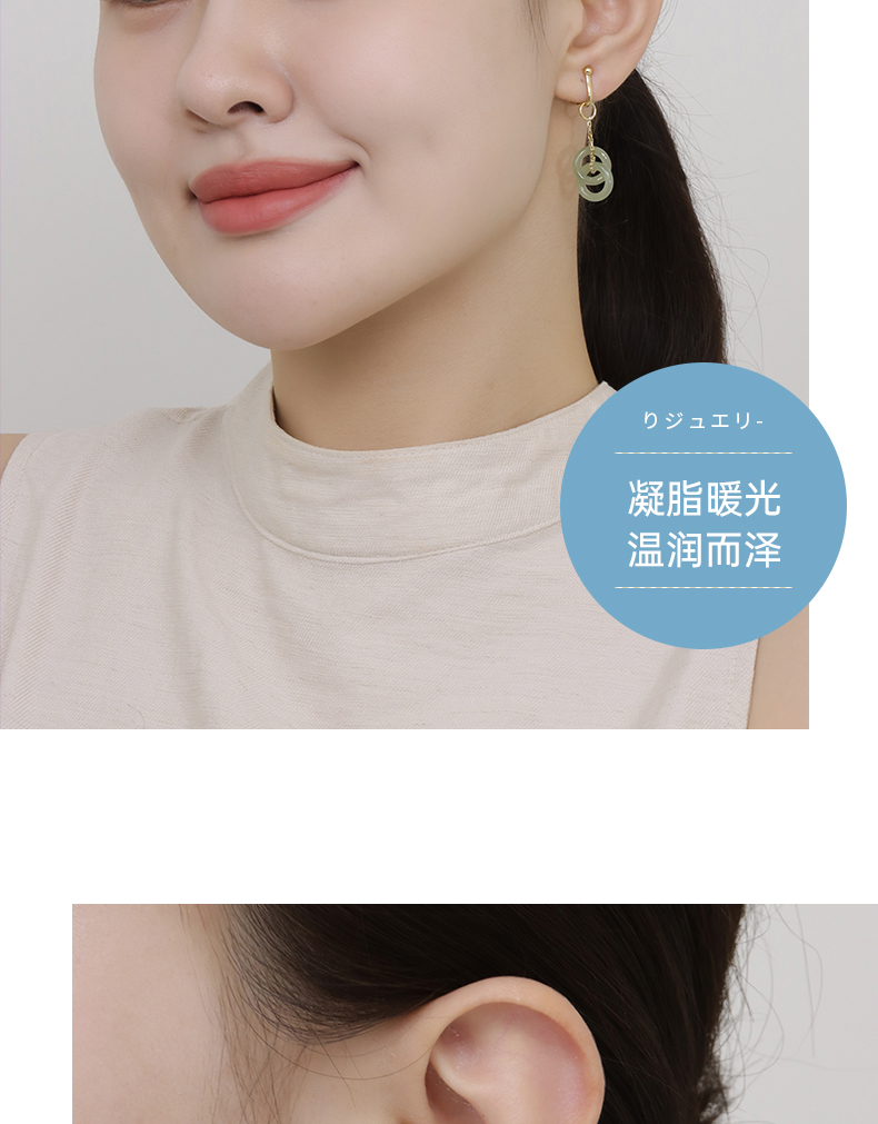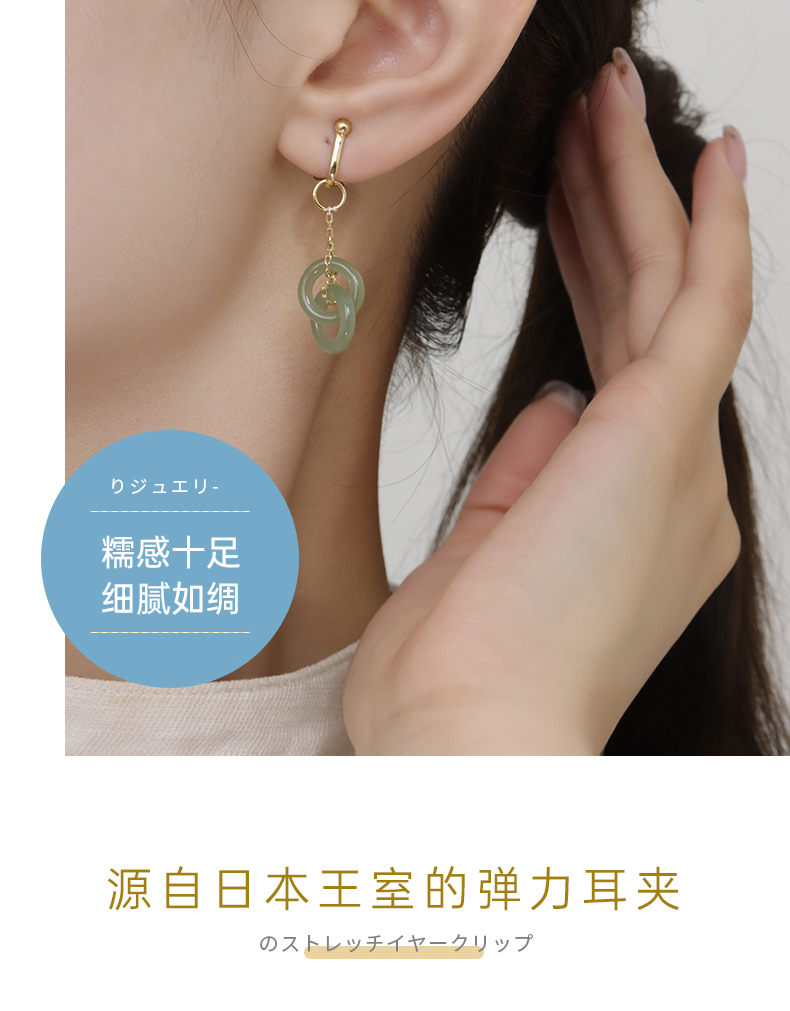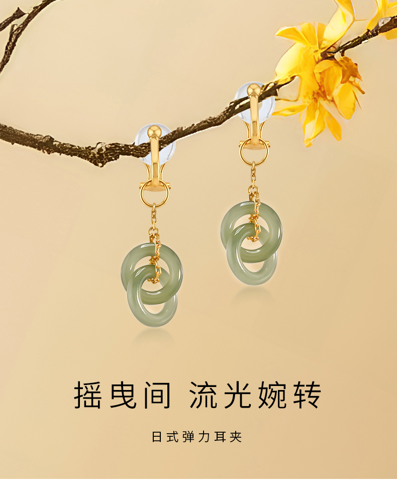【天猫同款】耳扣款-玉连环-18K金和田玉耳夹