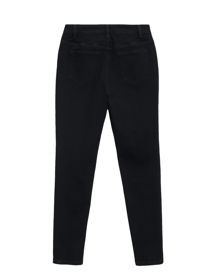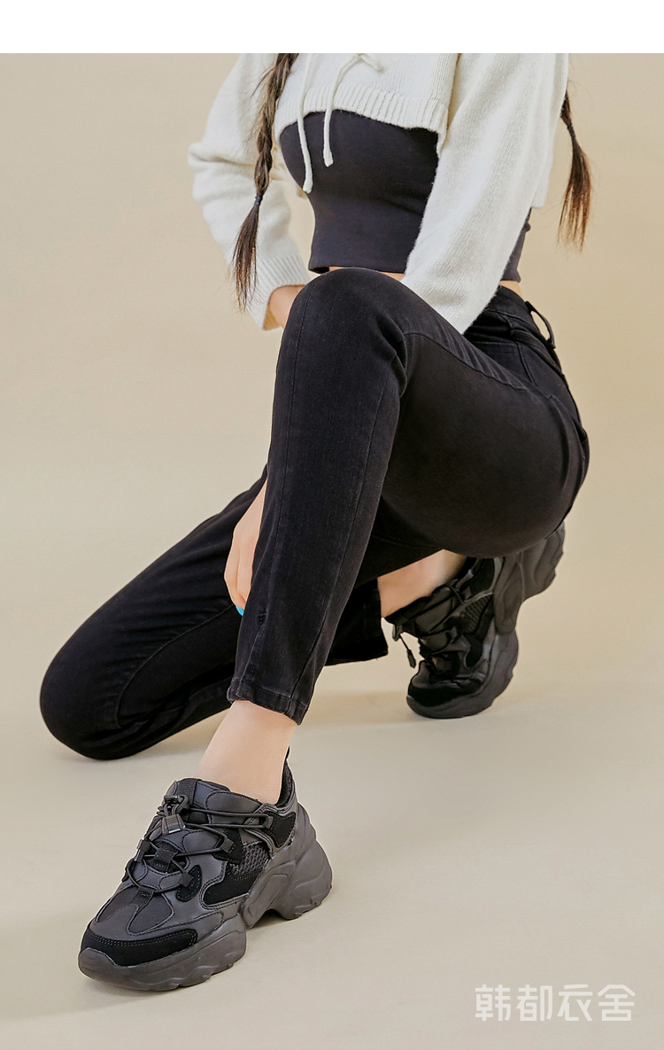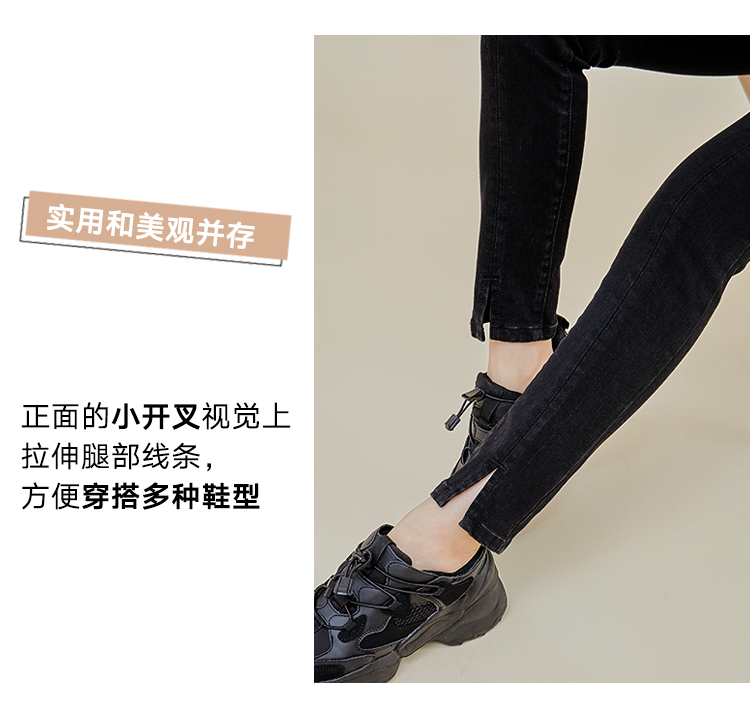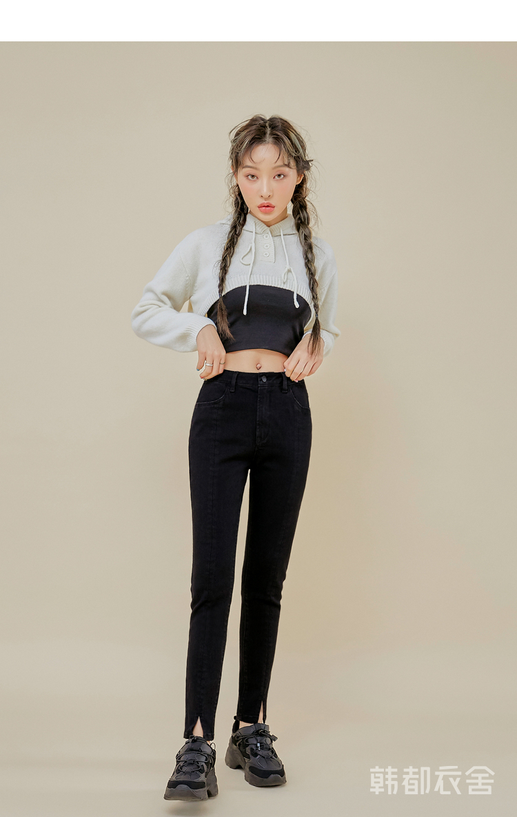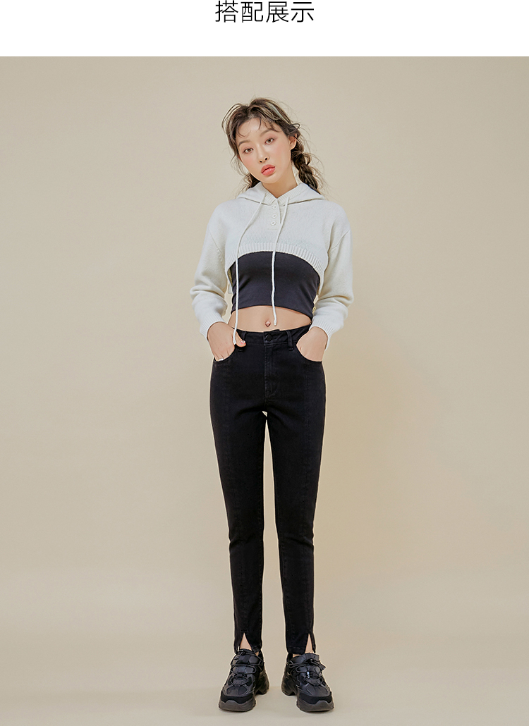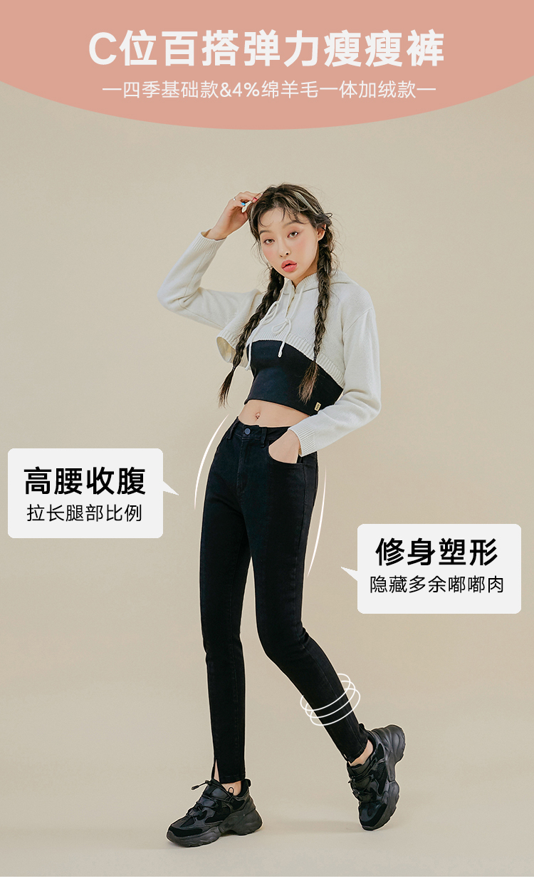 韩都衣舍2021春新款女弹力修身小脚显瘦加绒牛仔长裤PT9808