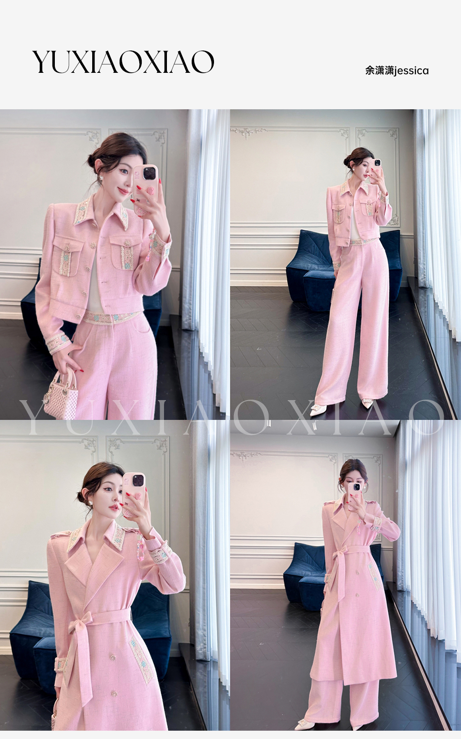余潇潇【布达佩斯爱戀】拼重工刺绣织带亮丝编织短外套&休闲裤&风衣