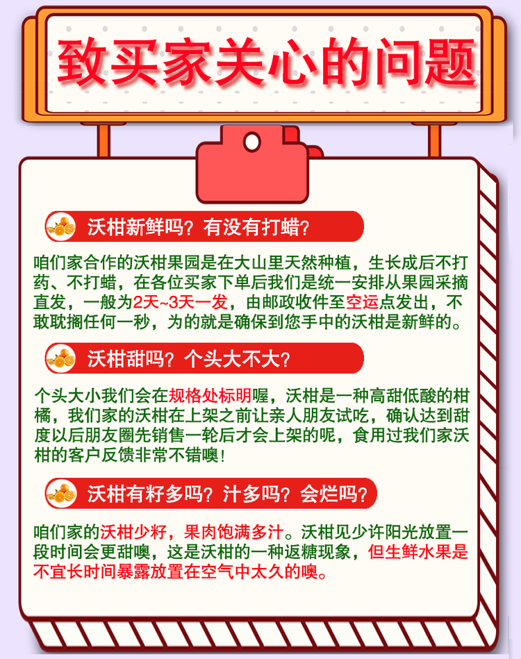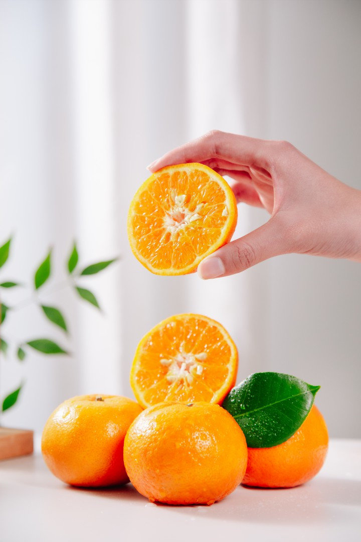 沃柑是由“坦普尔”橘橙与“丹西”红橘的杂交选育而出,是橘子和橙子的优良结合体!既有橘子的清新,又有橙子的浓郁,无酸纯甜的果味浸人心脾!剥下的皮放在室内,犹如天然清新剂!