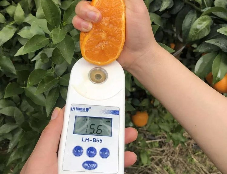 👍 我们随机检测沃柑的糖度,约在15.6度,普通柑橘的糖度大多在9-12度!简直就是一颗满满的小甜心!