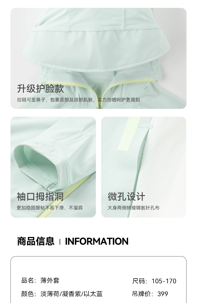 水孩儿童装夏季新款儿童防晒凉感皮肤衣男童轻薄柔软拉链衫女童时尚拼色外套