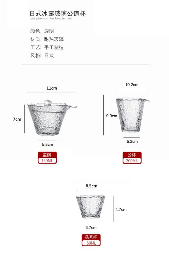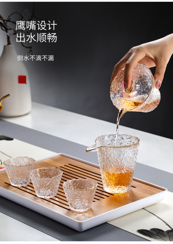 【品名】无铅水晶玻璃茶佣公道杯茶碗组合装