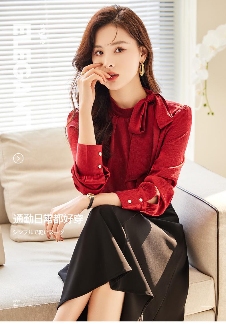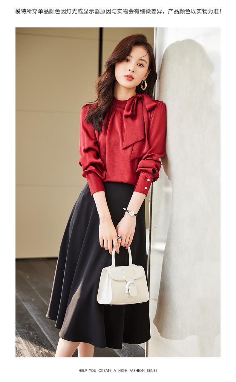 娜璐多 时尚衬衫套裙女2023秋季新款名媛轻熟风洋气蝴蝶结衬衣半身裙套装