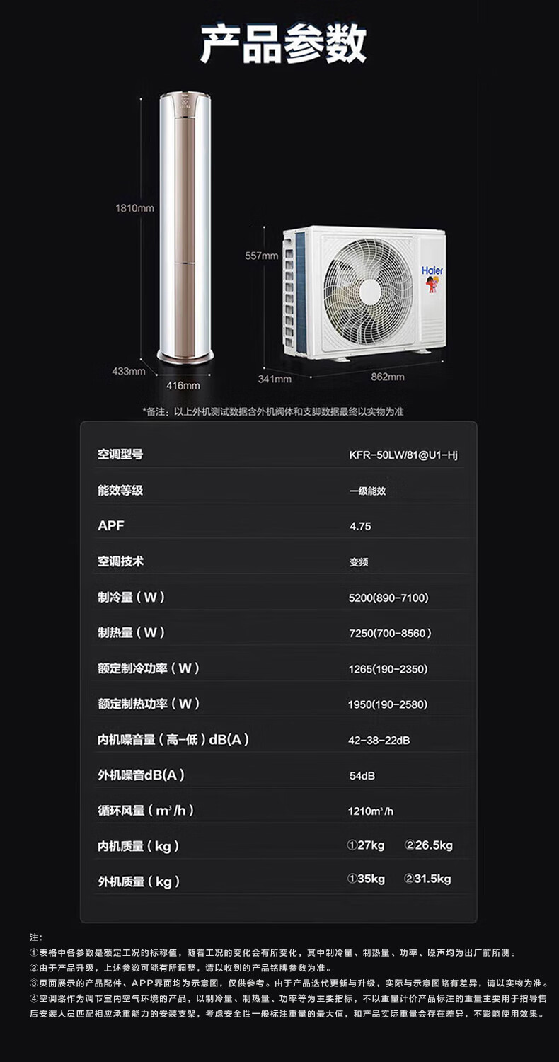 海尔空调 京喜2P客厅 1级节能 KFR-50LW/81@U1-Hj