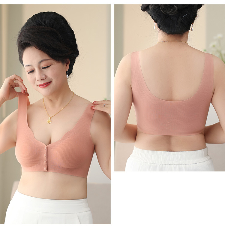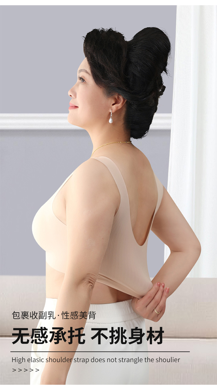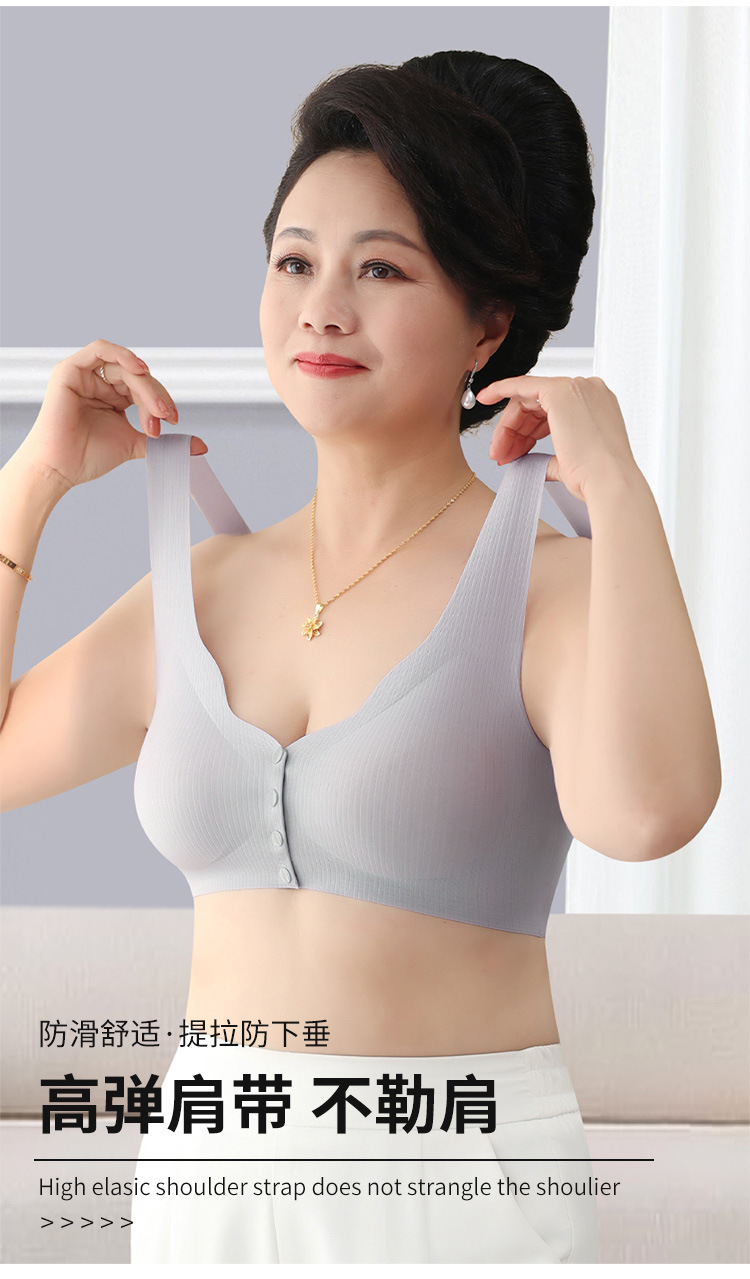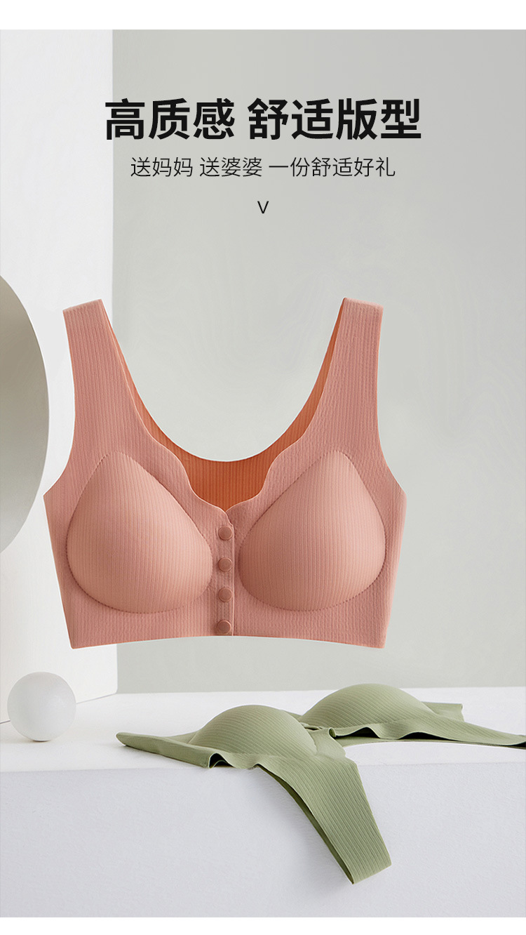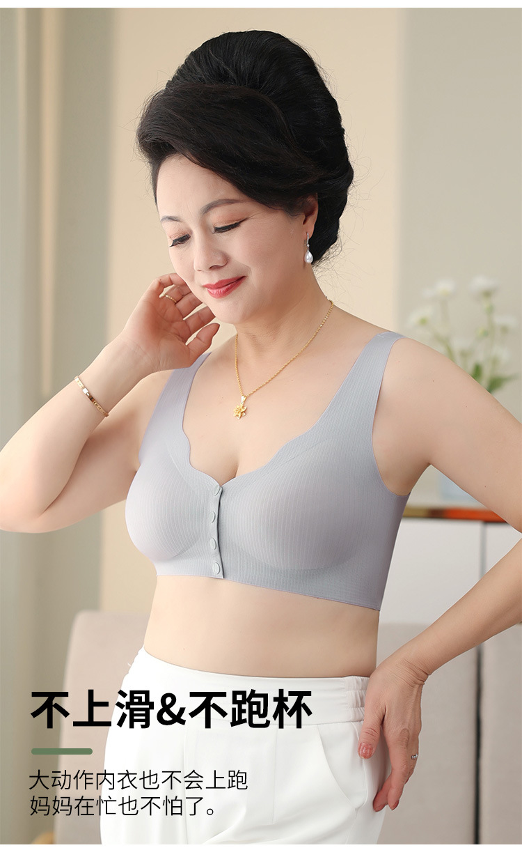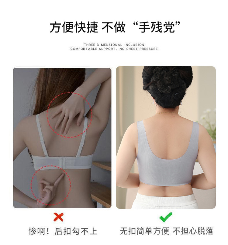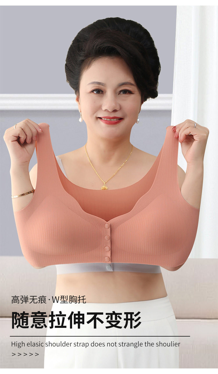 【背心款!便携前开扣】新款背心式妈妈文胸中老年人无痕前扣内衣女大码无钢圈全罩杯胸罩,便携前扣再也不用反手搭扣。ry