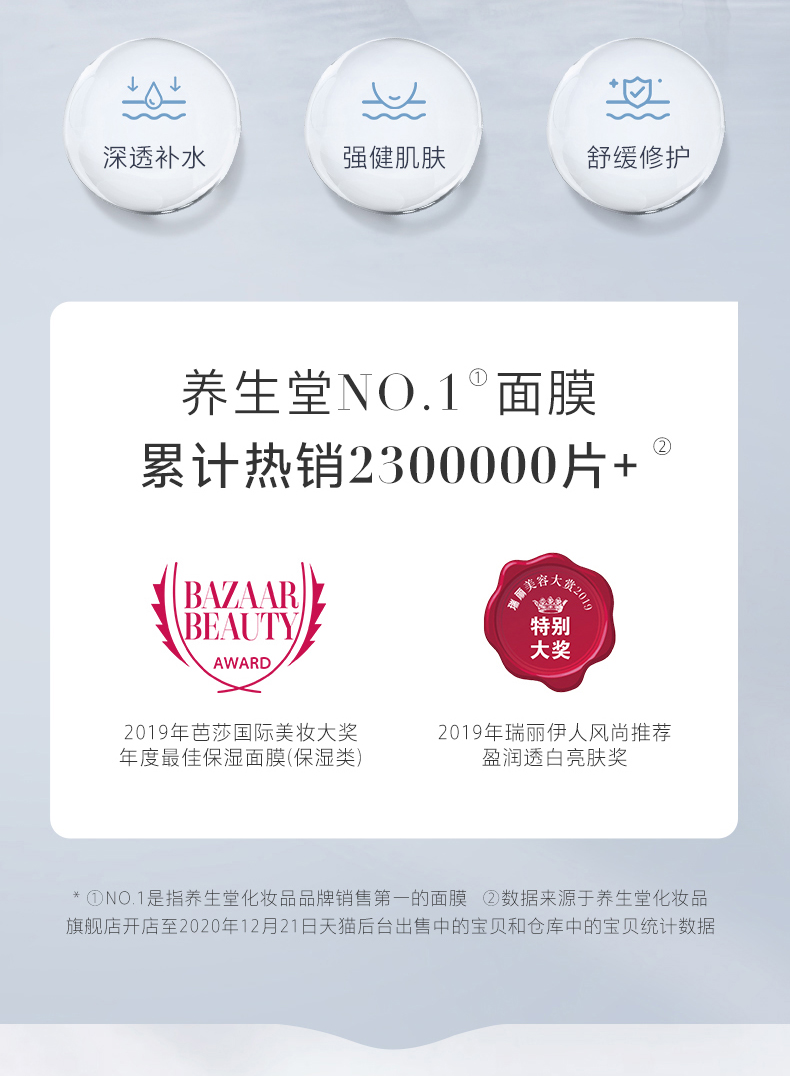 【商城赠品】养生堂桦树汁补水保湿面膜 24ml*5片装