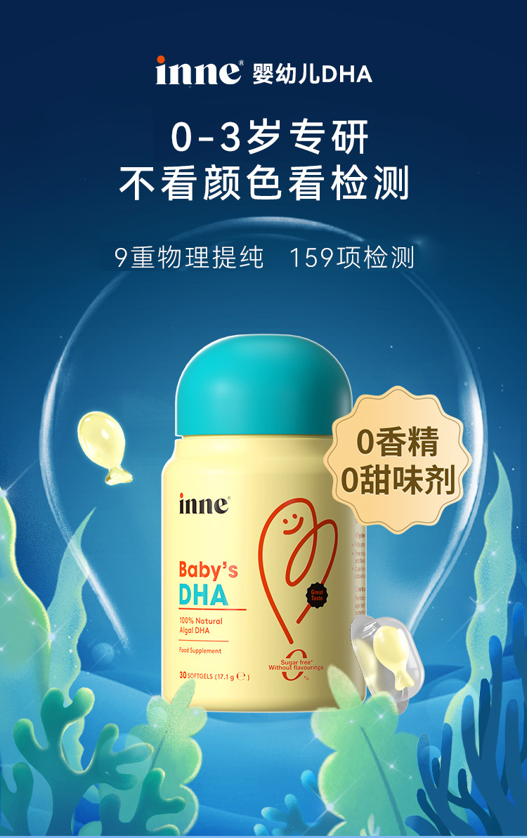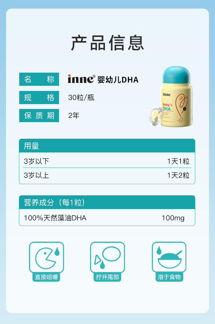【含邮含税】inne婴幼儿藻油DHA 30粒/瓶