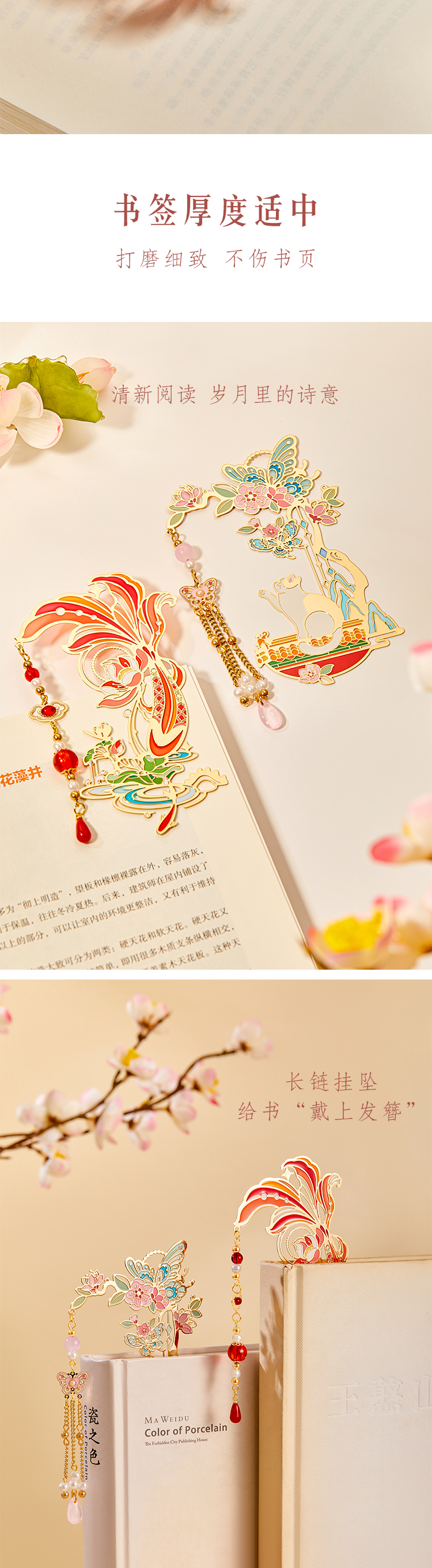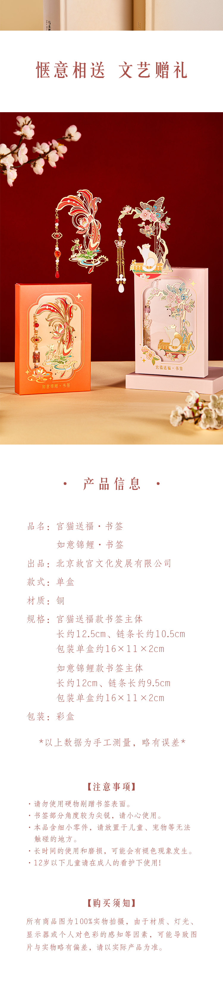 【故宫书签】宫猫送福锦鲤流苏书签古典中国风博物馆文创毕业礼物