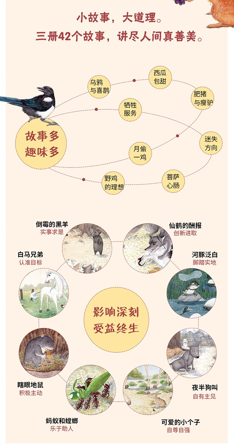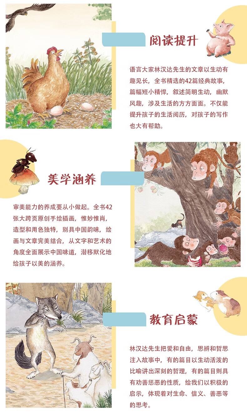 🏆 国内知名画师精心手绘水彩插图,✍🏻全书共42张大跨页原创手绘插图,🌈惟妙惟肖地描绘出故事中各个主人公的鲜明特点,潜移默化给予孩子美的涵养!