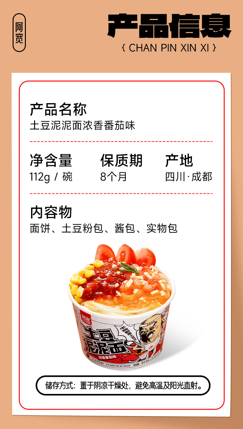 阿宽 土豆泥泥面 浓香番茄味 112g/桶