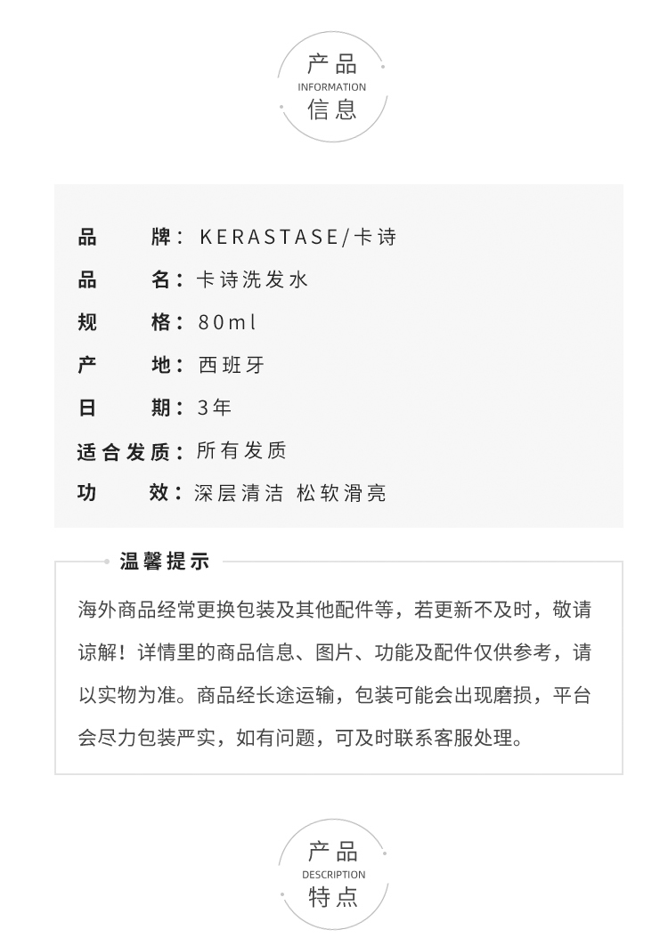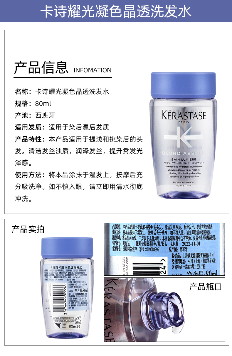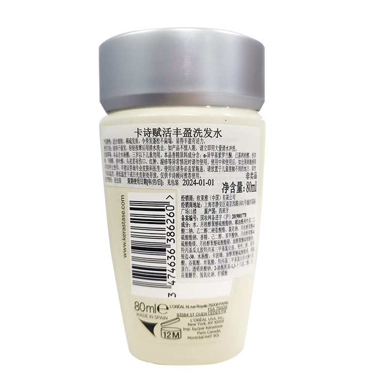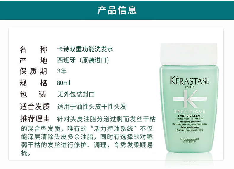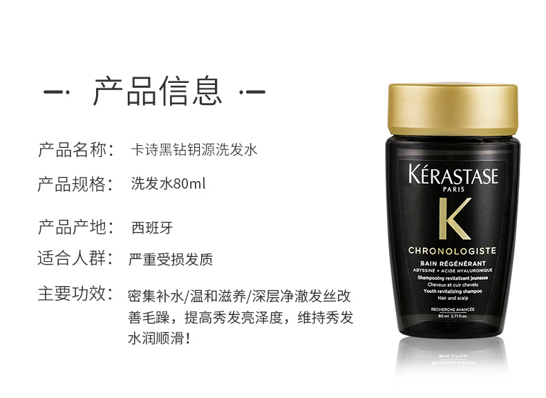 卡诗白金赋活双重控油黑钻钥源洗发水80ml中小样试用旅行装