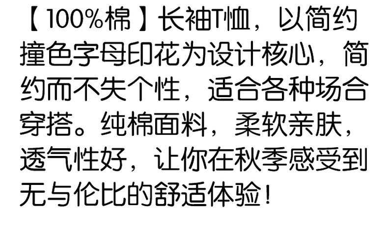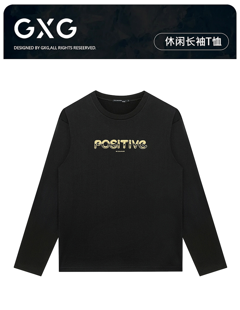 GXG男装【100%棉】25秋季时尚潮流撞色字母舒适休闲男式长袖T恤K&C
