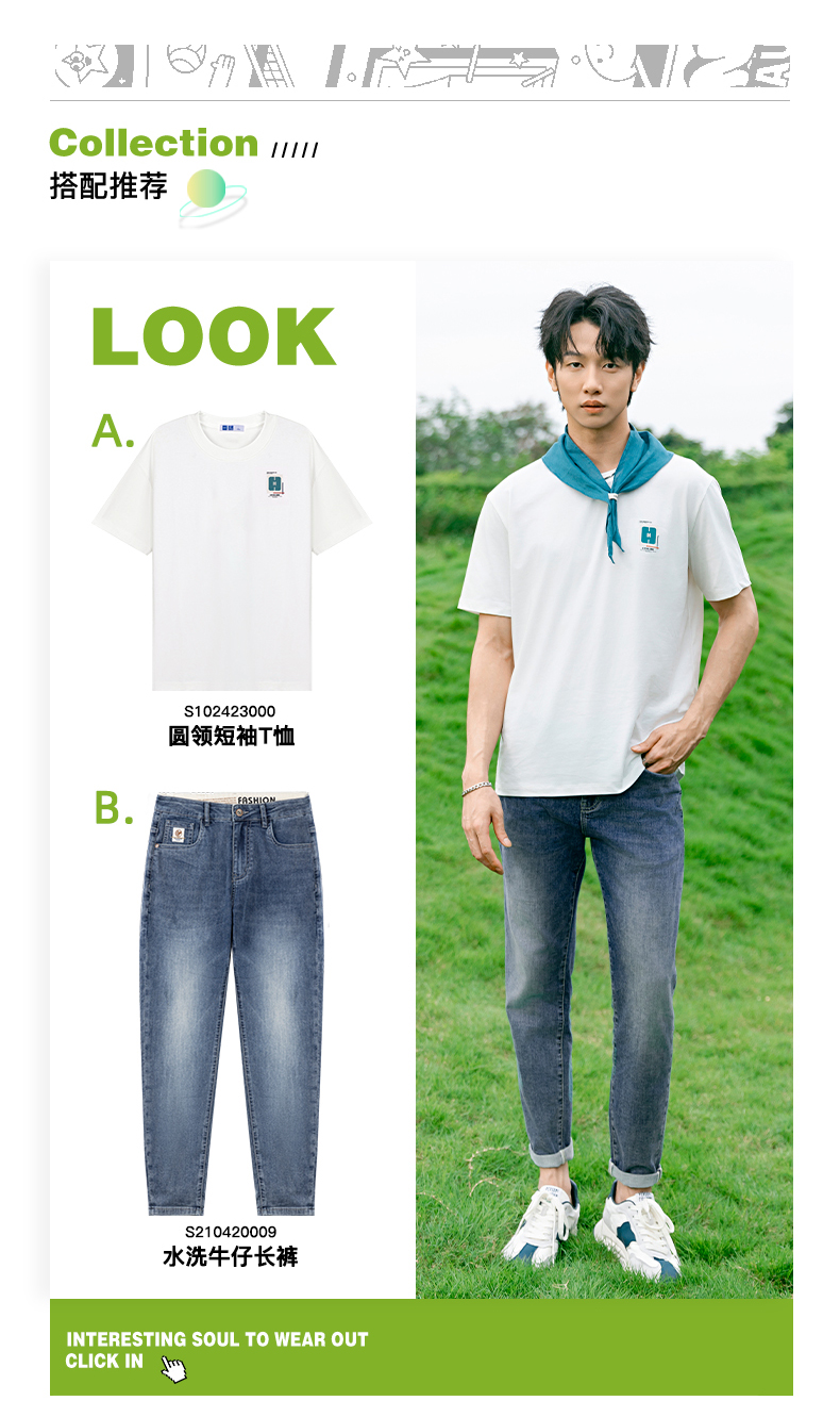 【断码清仓】HX 夏季圆领短袖T恤S102423000101/02