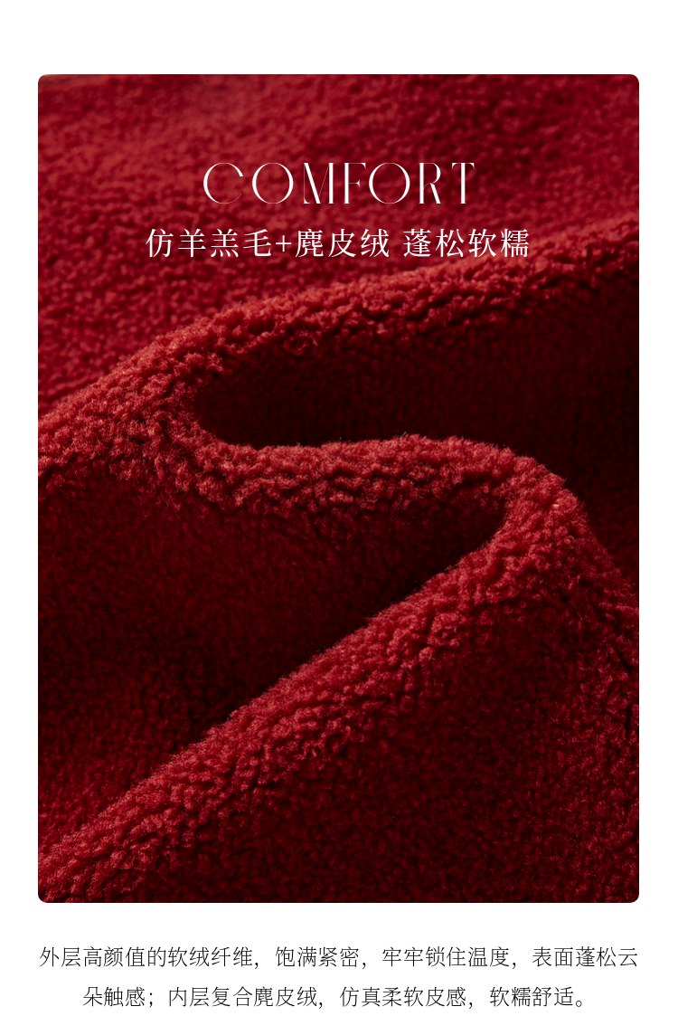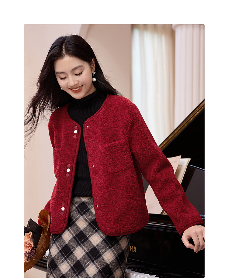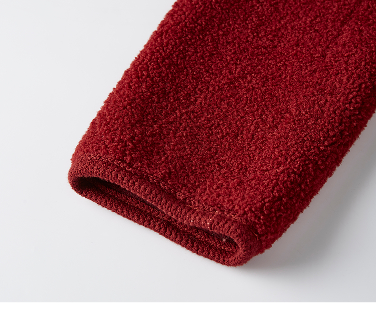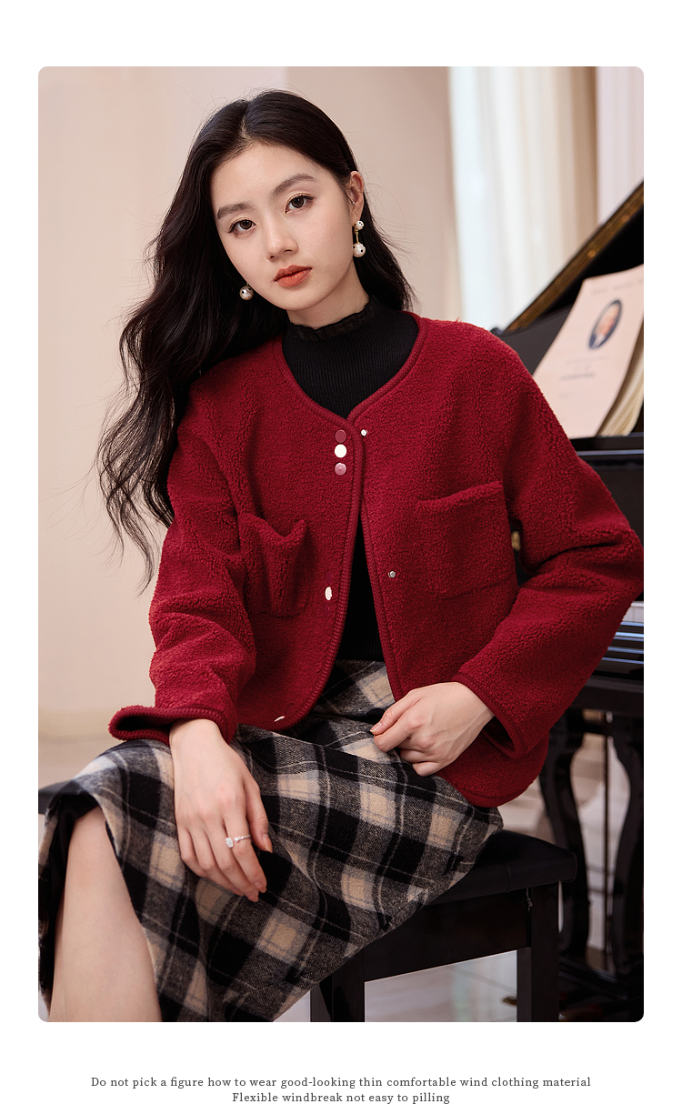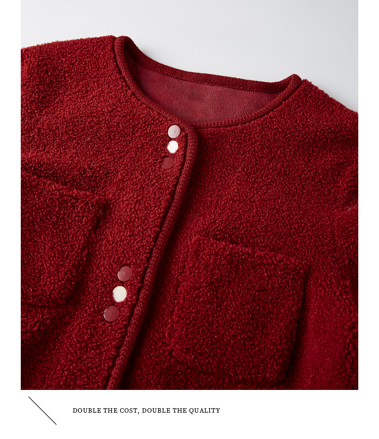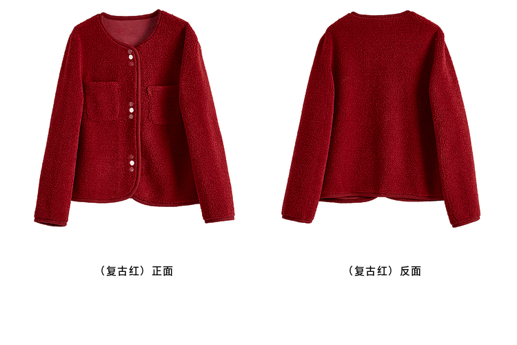 【年终特卖】熙世界皮毛一体仿羊羔毛麂皮绒短款外套女秋冬保暖红色夹克上衣