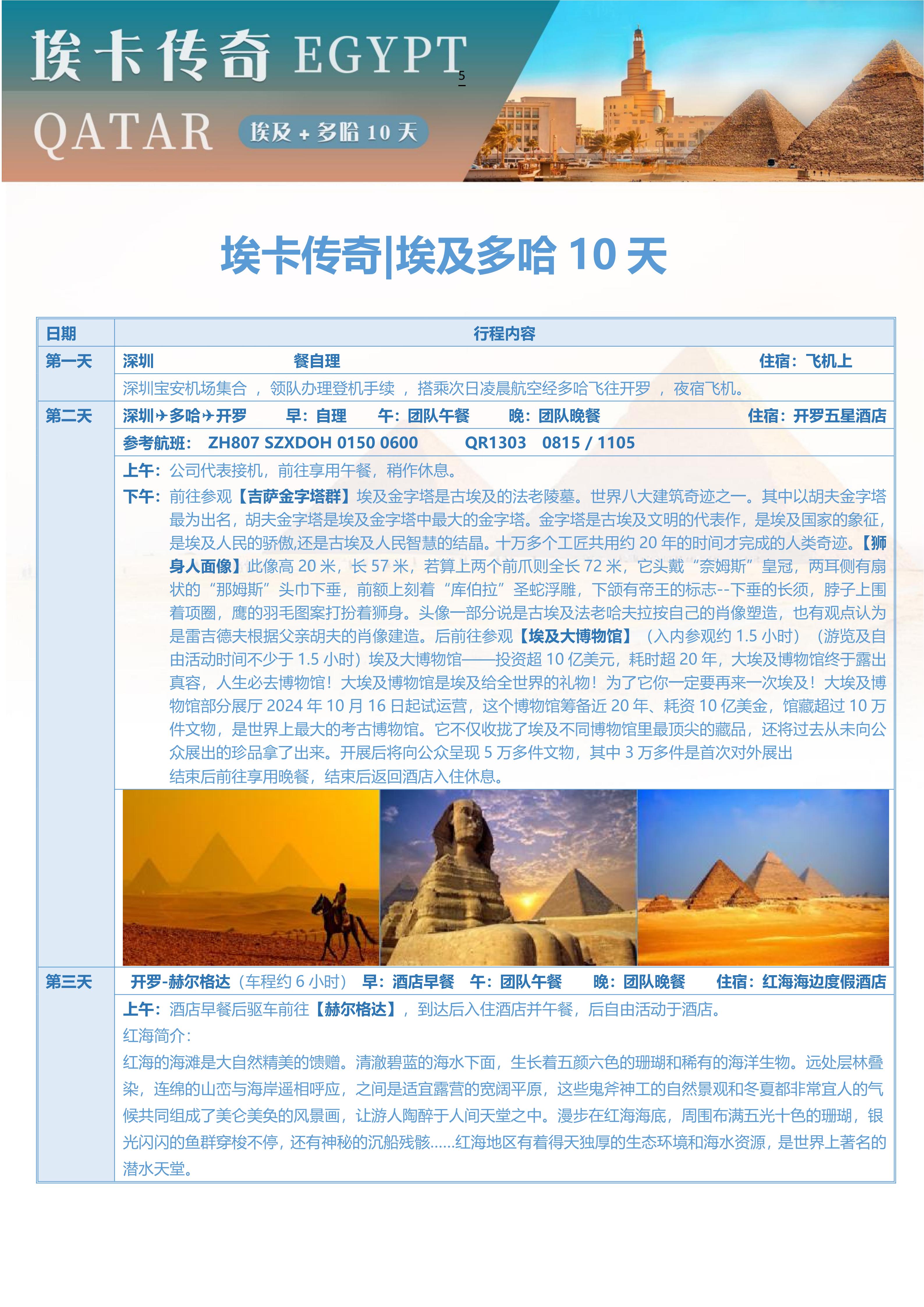 【春节不请假】<埃及+卡塔尔10天两国联游-深圳起止>金字塔、埃及大博物馆、红海、赫尔格达、卢克索、风帆船游尼罗河、卡塔尔国家博物馆、卡塔尔文化村