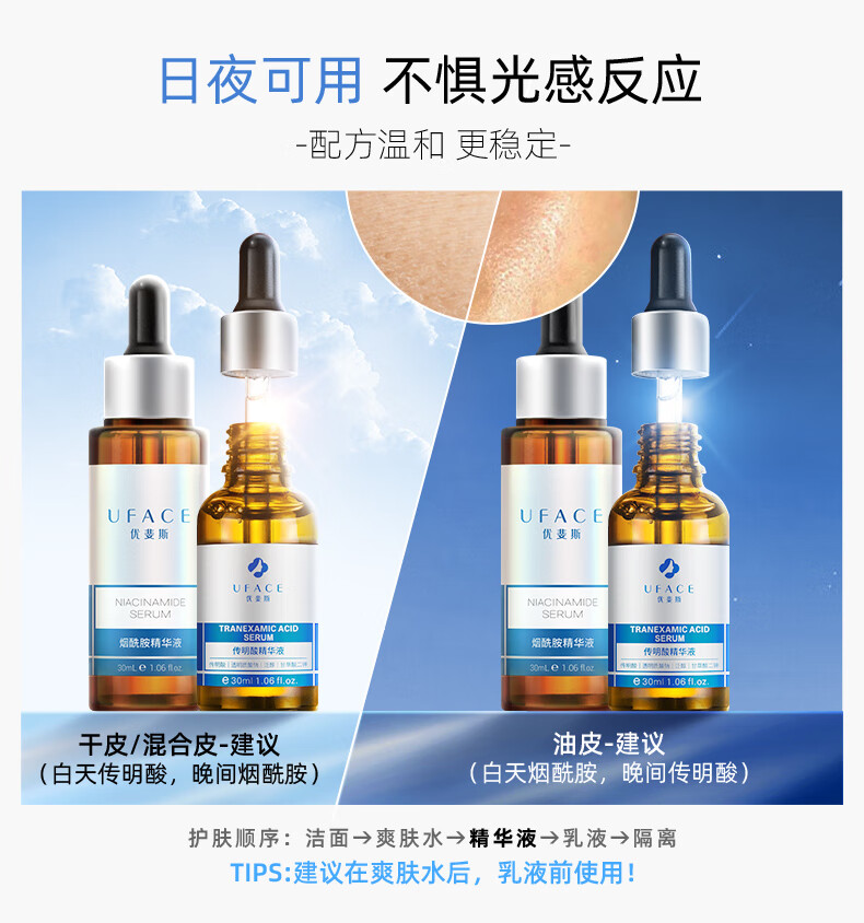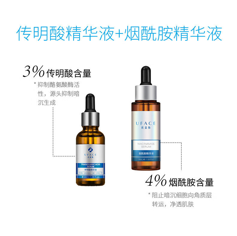 优斐斯(uface)传明酸30ml+烟酰胺精华液30ml 双子星套装 提亮肤色改善暗沉