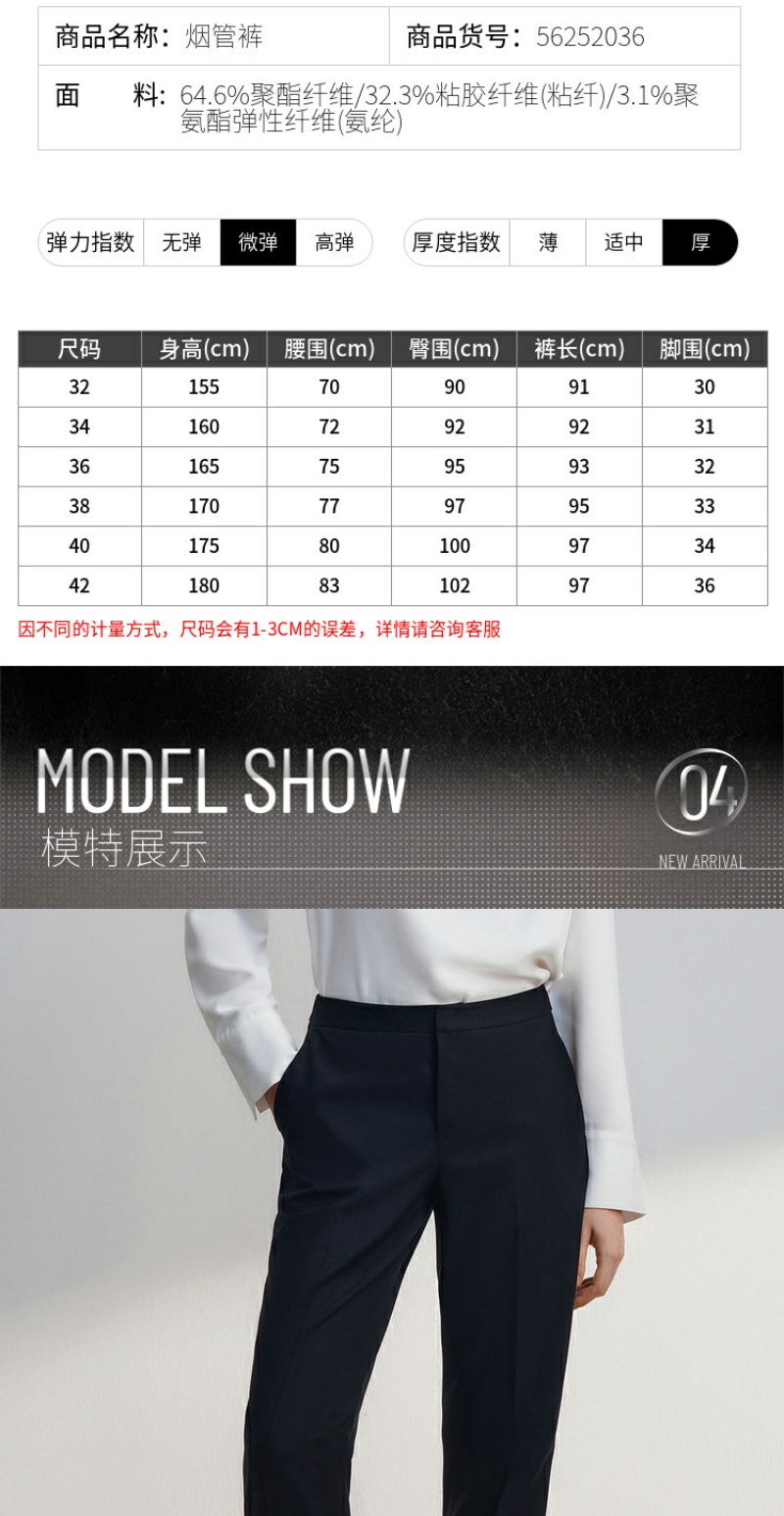 G2000女装FW25商场新款【烟管裤/舒适弹性】商务通勤九分裤西裤56252036