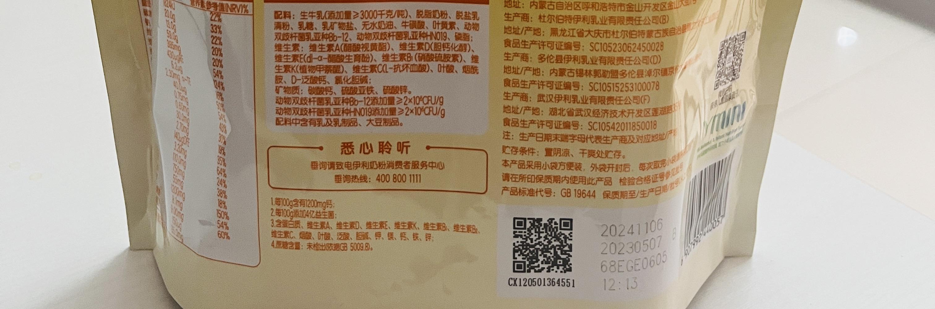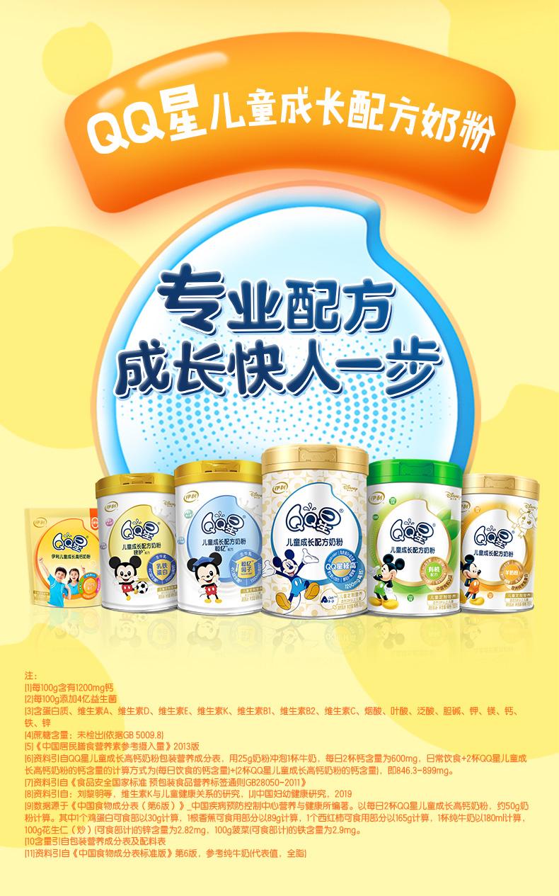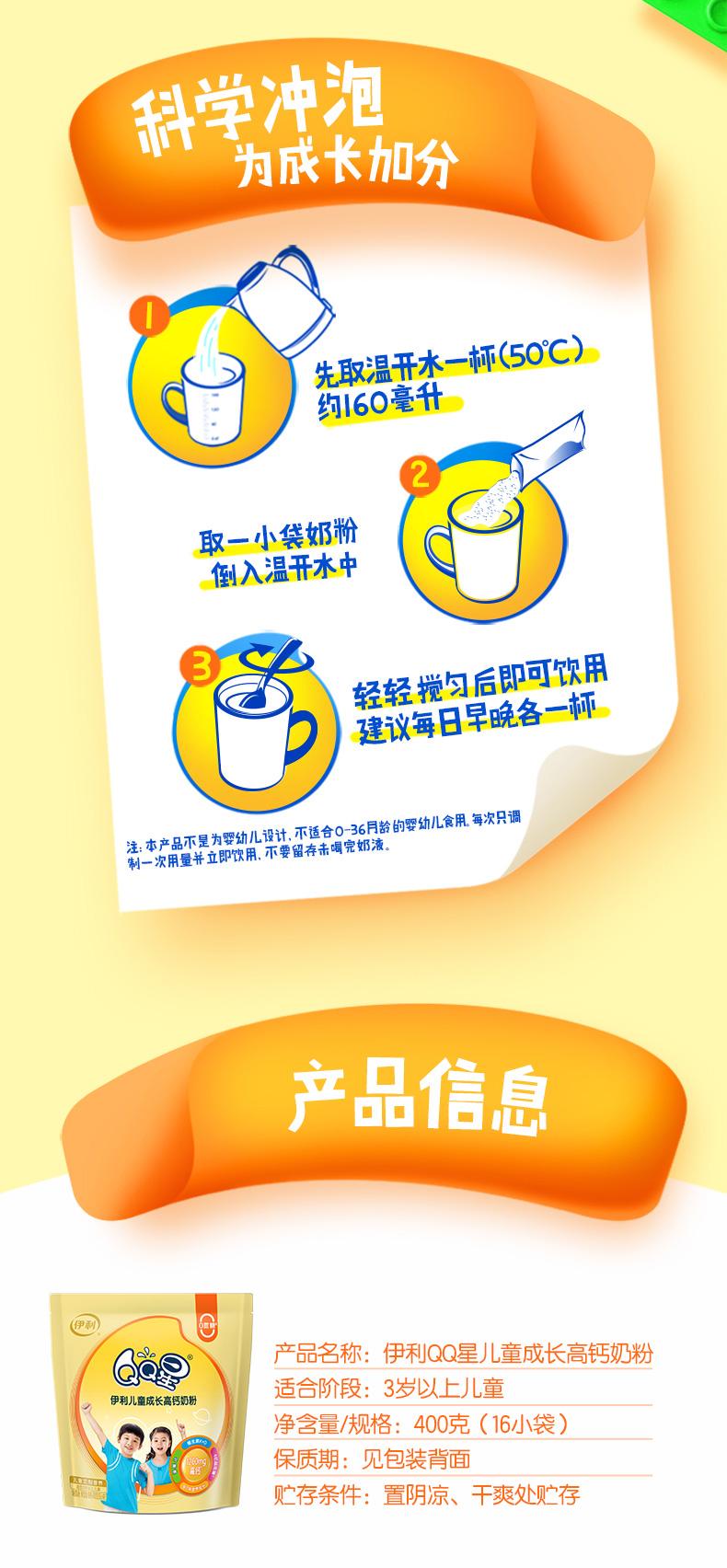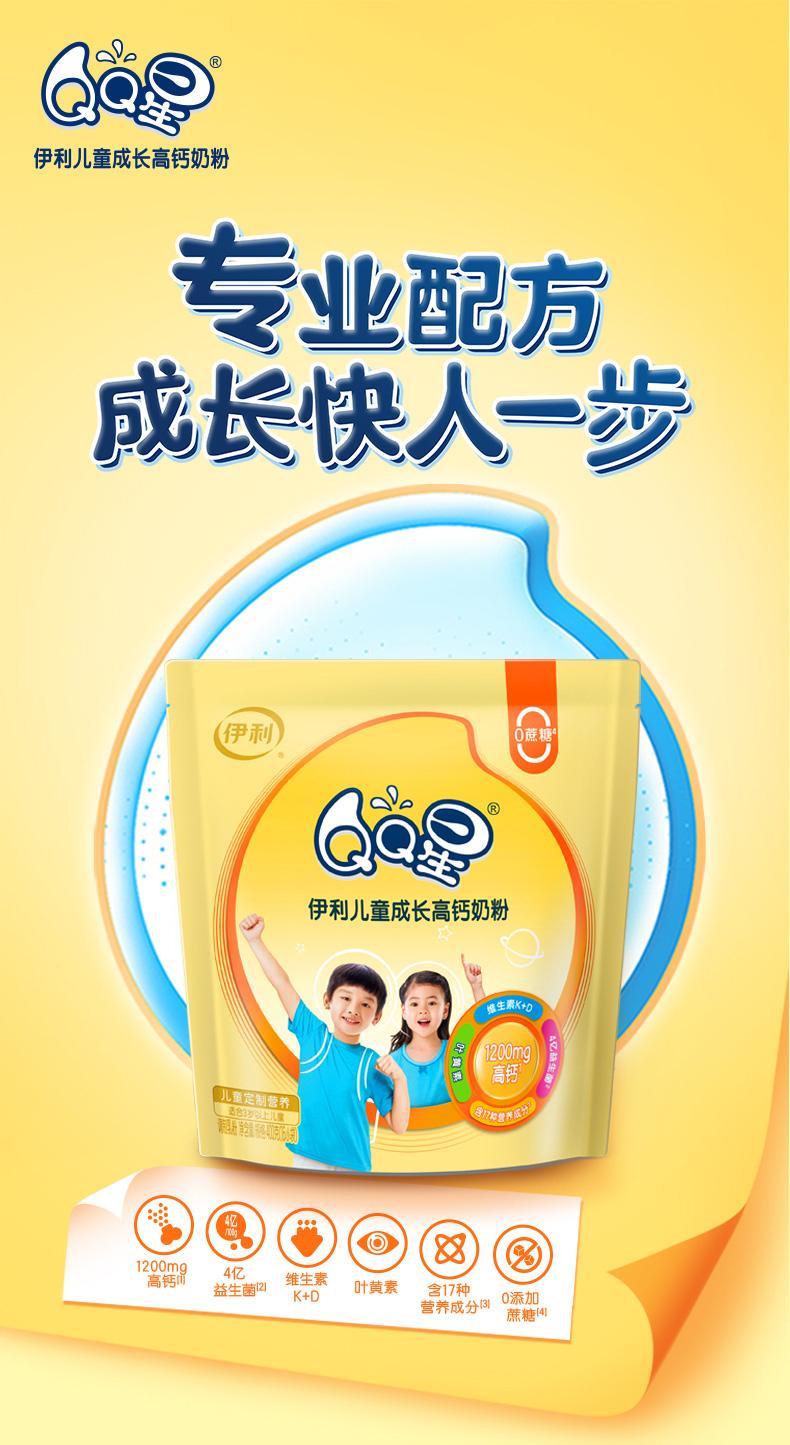 伊利QQ星儿童成长高钙400g奶粉小袋装含益生菌早餐奶学生17种营养