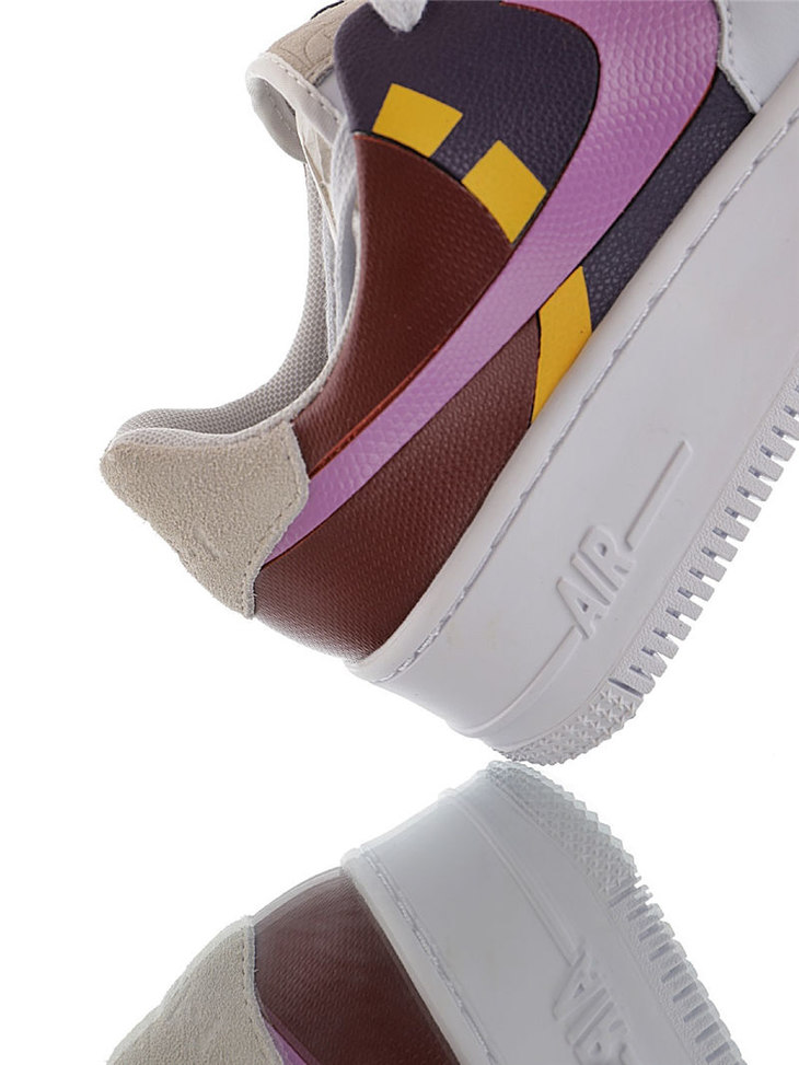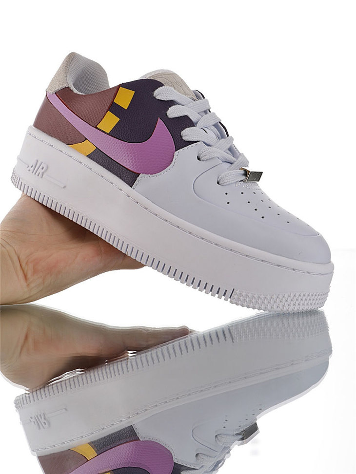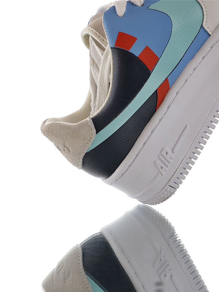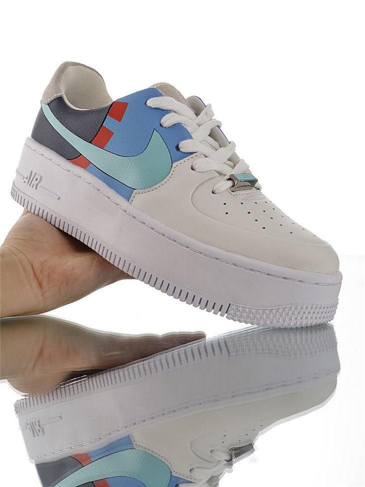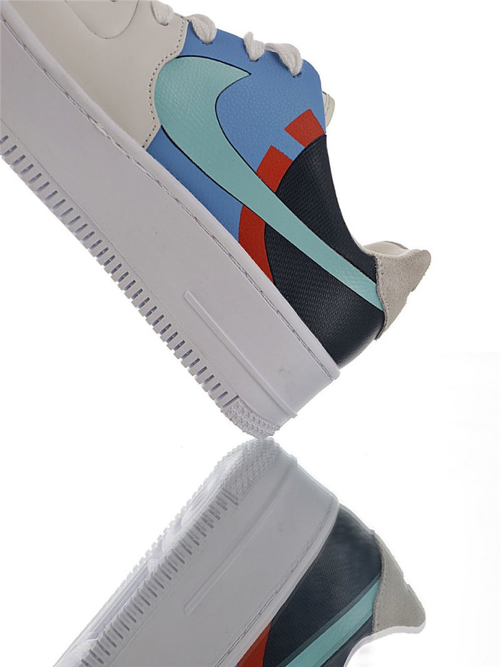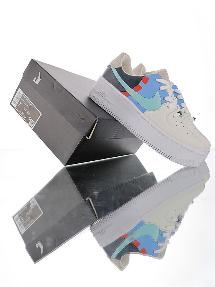 耐克Nike WMNS Air Force 1 Sage Low LX厚底松糕改版空军一号女神板鞋 皮革拼接灰深紫酒红粉 拼接米白浅兰深蓝月