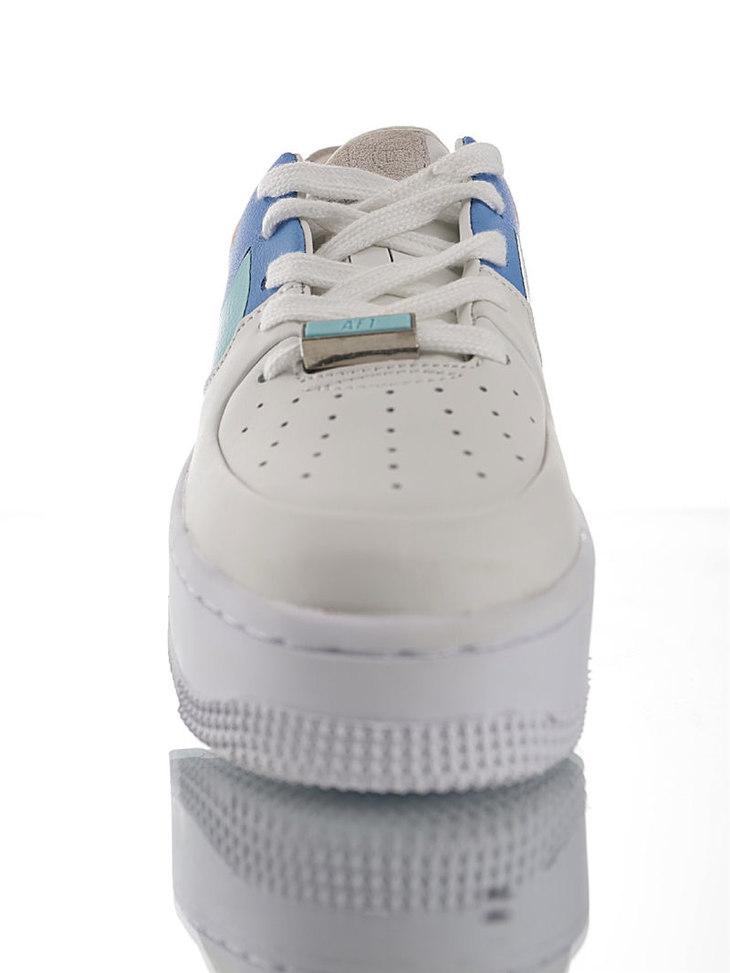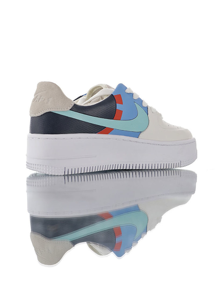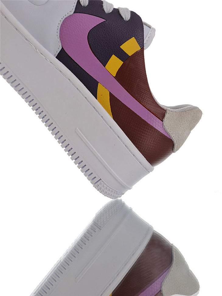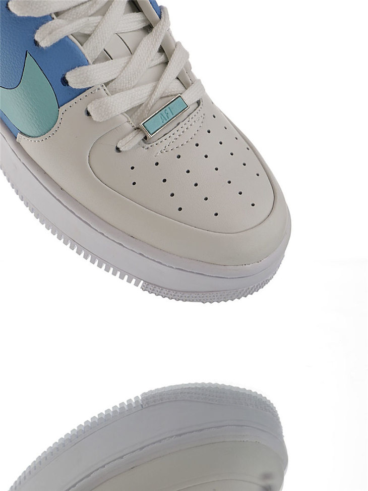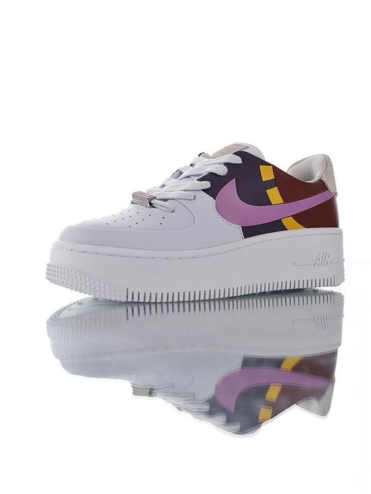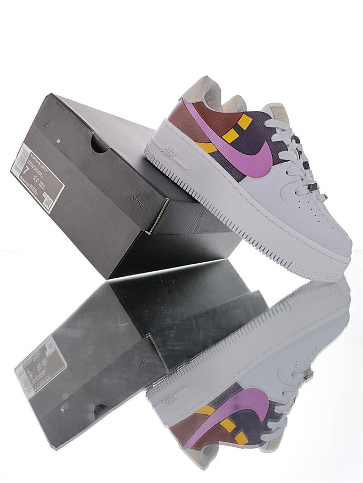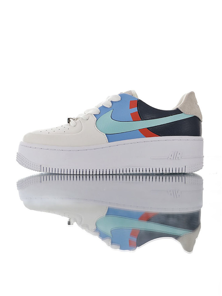 耐克Nike WMNS Air Force 1 Sage Low LX厚底松糕改版空军一号女神板鞋 皮革拼接灰深紫酒红粉 拼接米白浅兰深蓝月