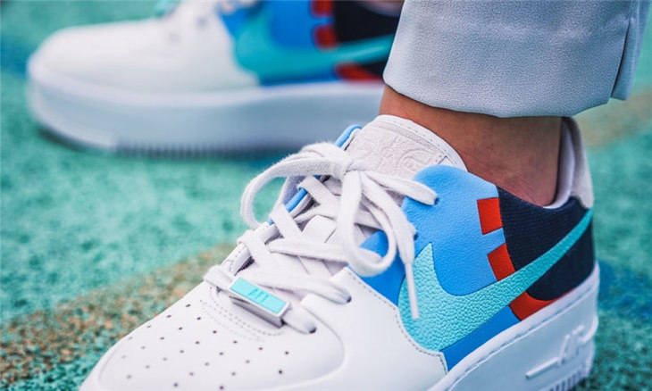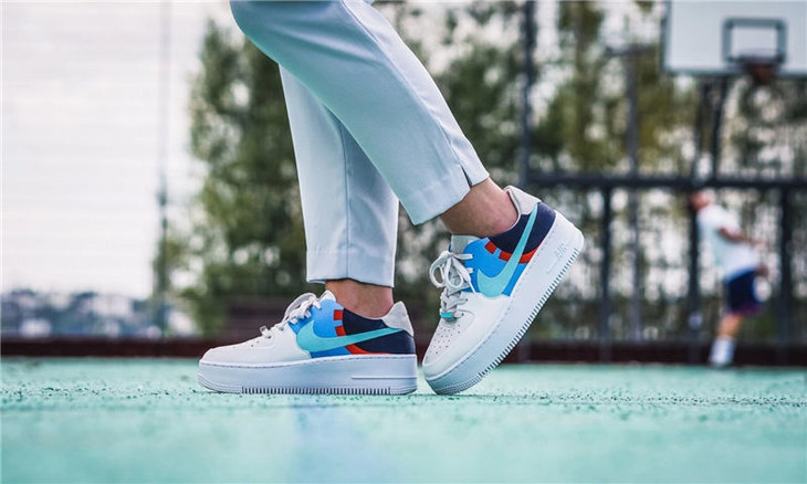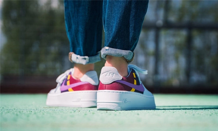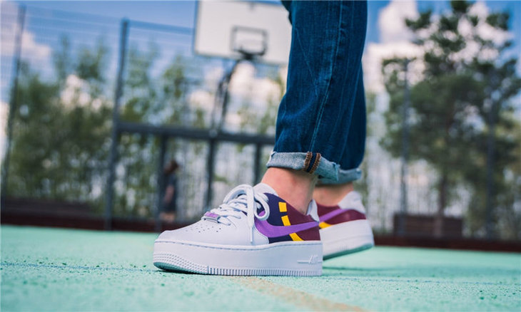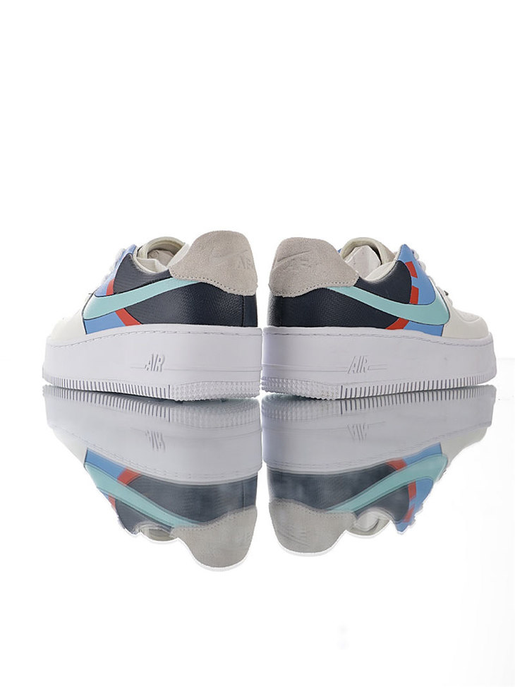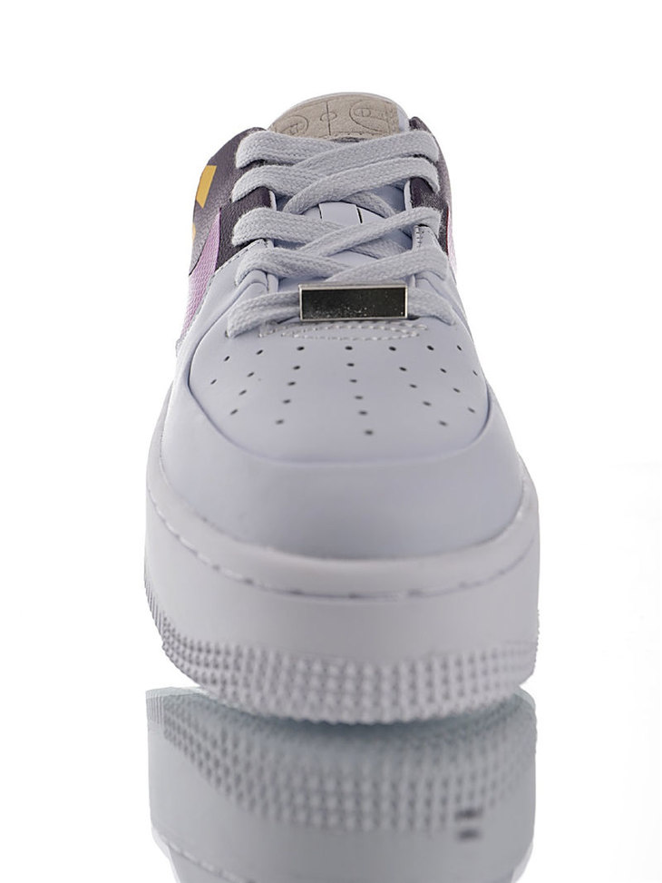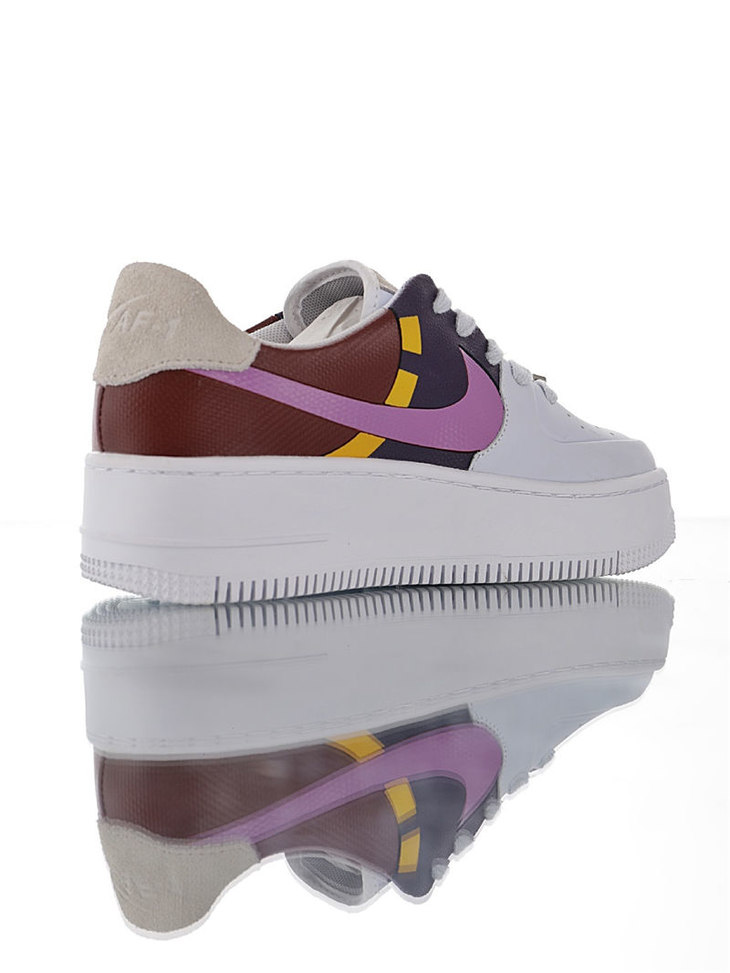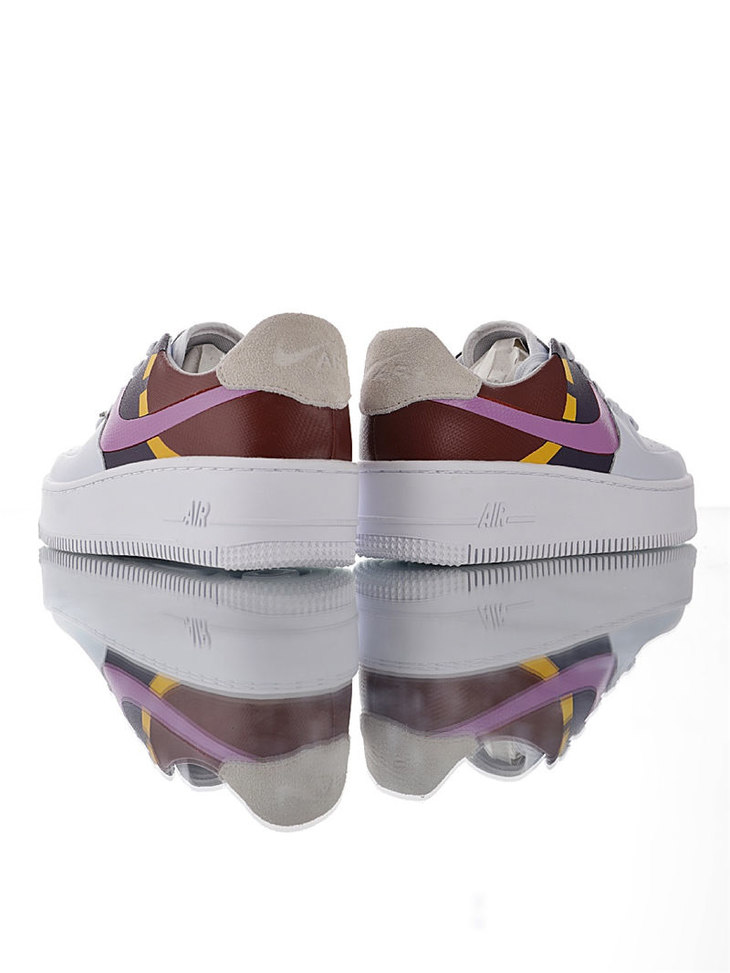 耐克Nike WMNS Air Force 1 Sage Low LX厚底松糕改版空军一号女神板鞋 皮革拼接灰深紫酒红粉 拼接米白浅兰深蓝月