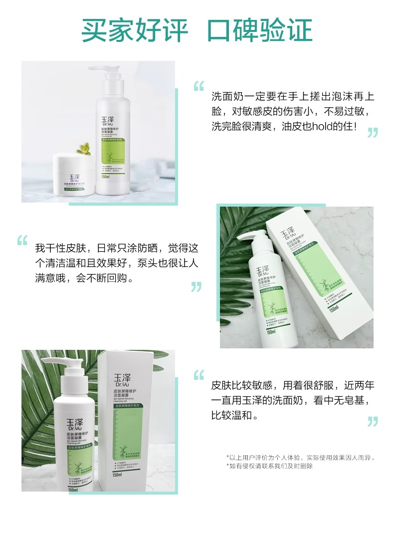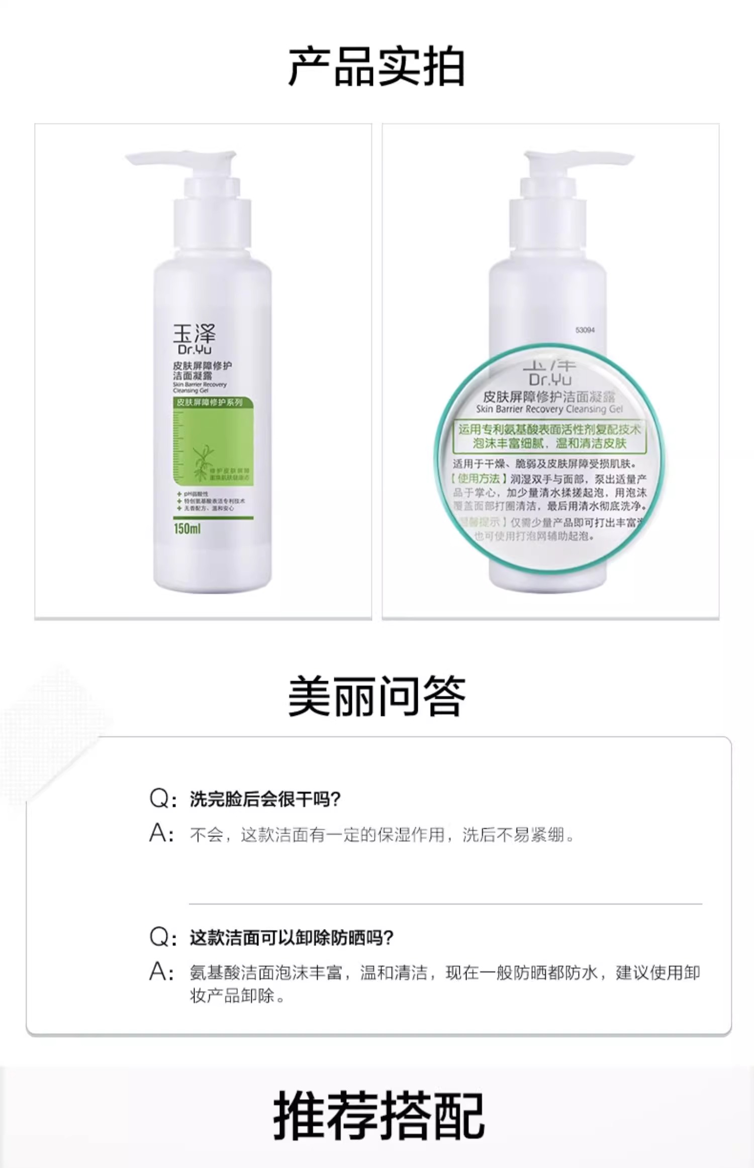 玉泽 皮肤屏障修护洁面凝露150ml 氨基酸表活洗面奶 温和清洁 48小时发货