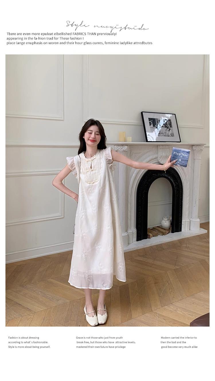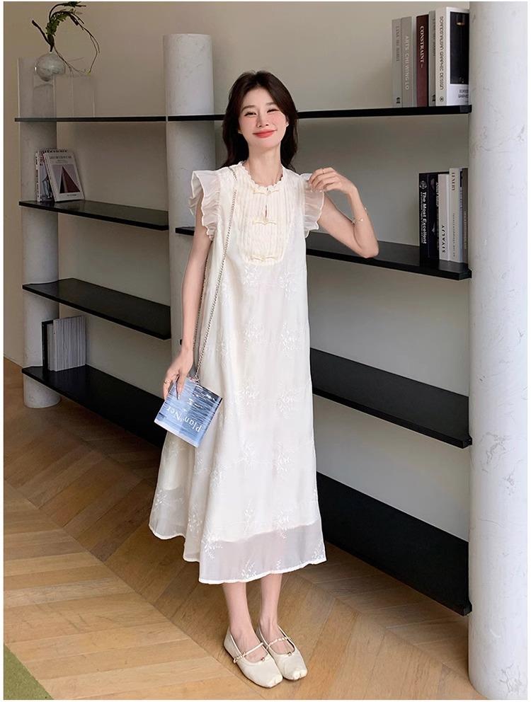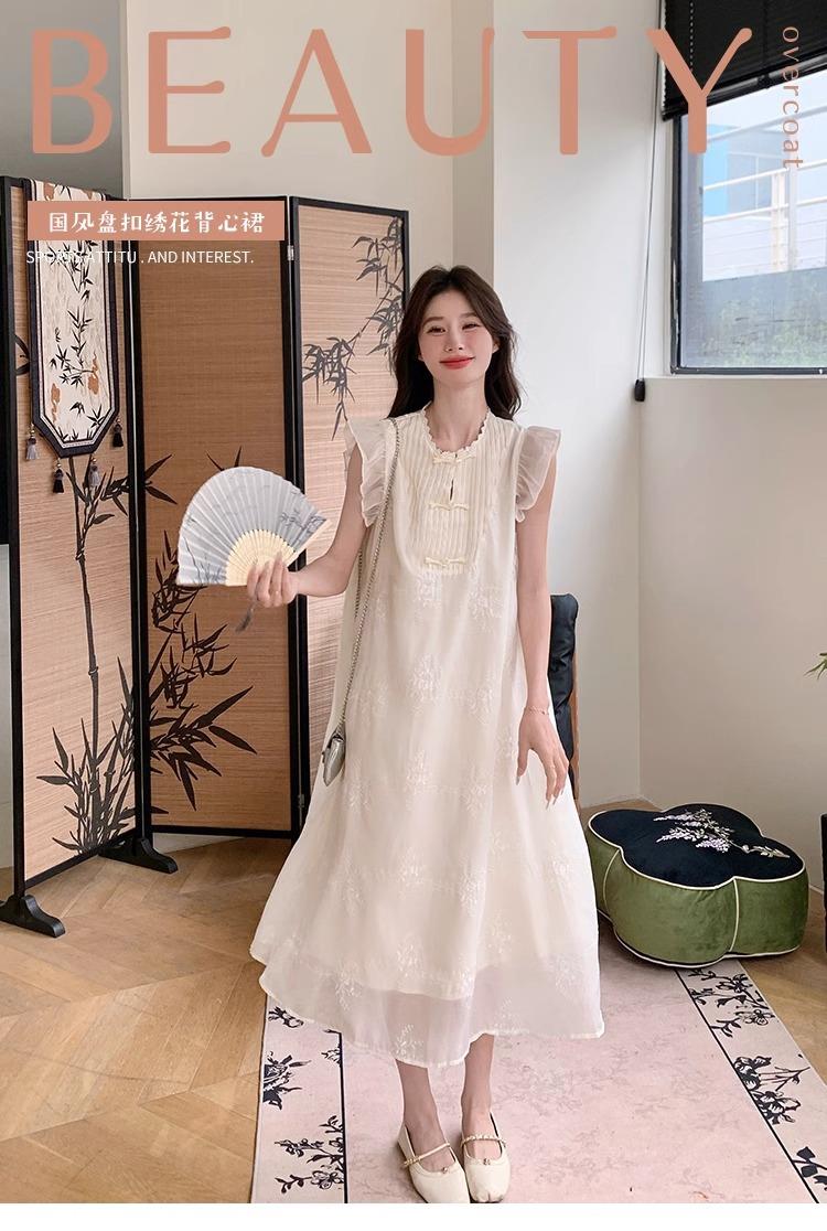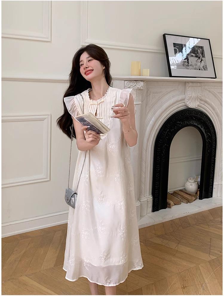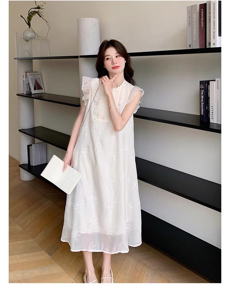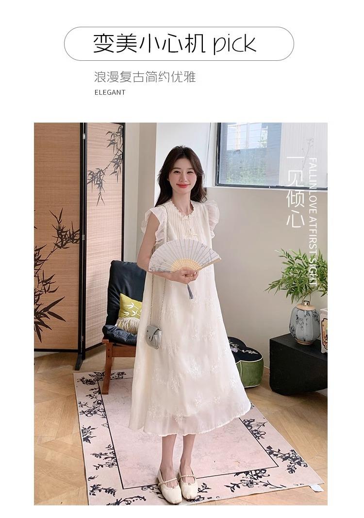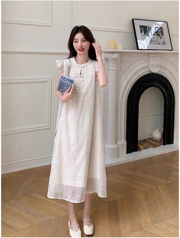 *孕妇装哺乳期夏季新款国风时尚圆领小飞袖宽松显瘦可外穿刺绣连衣裙M-2XL