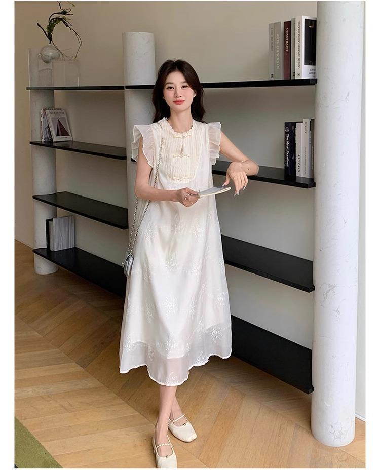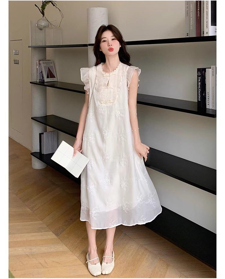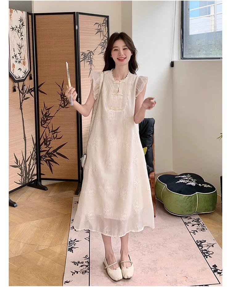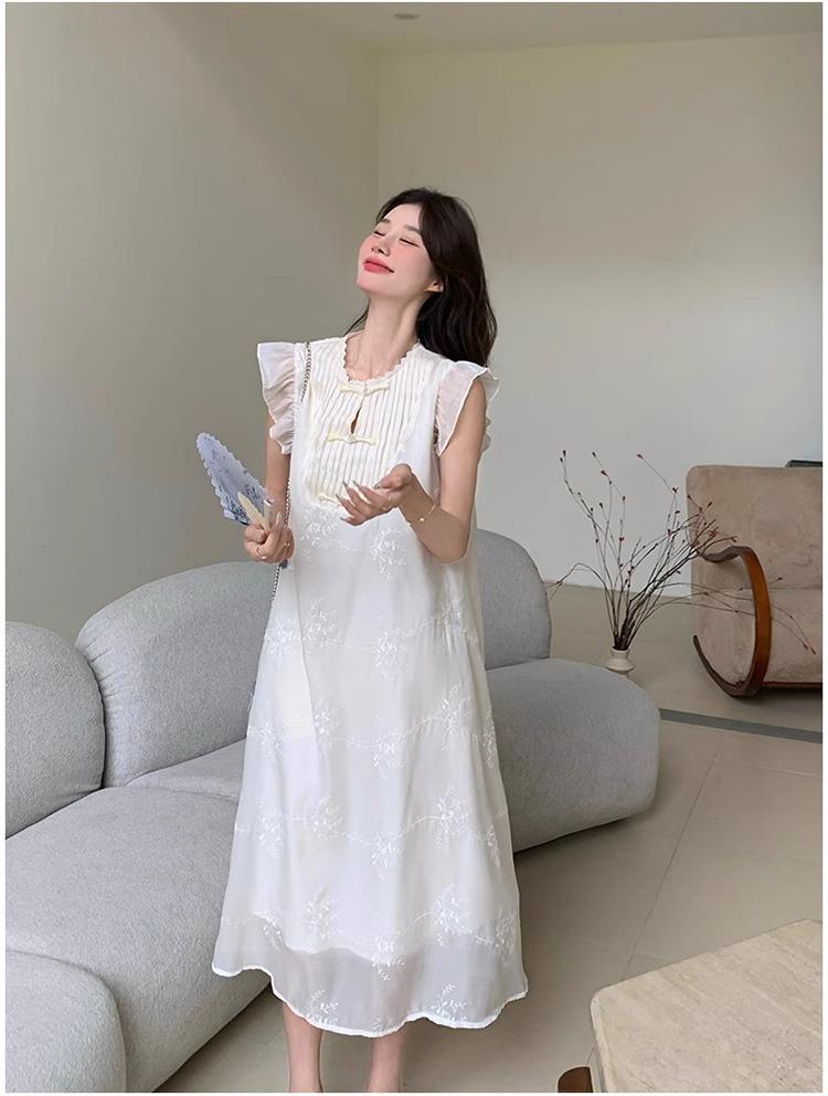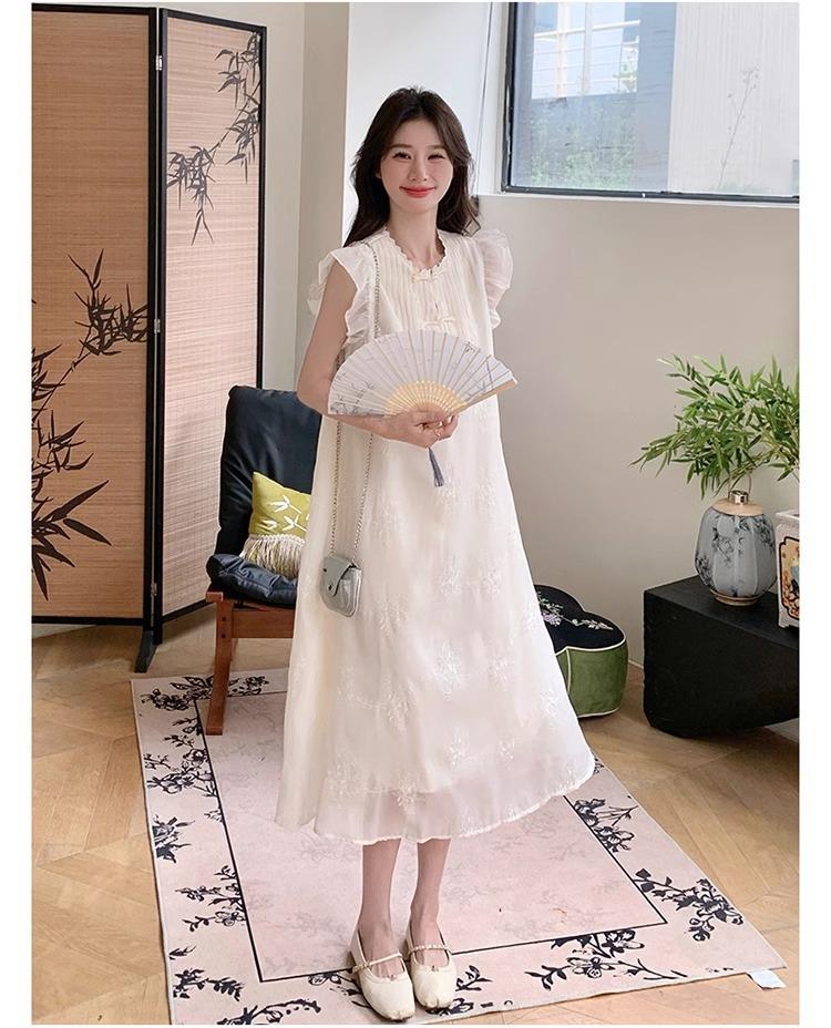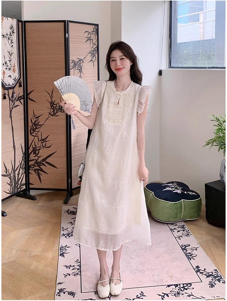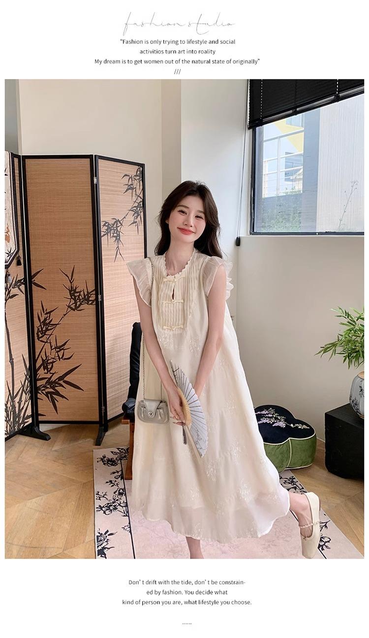 *孕妇装哺乳期夏季新款国风时尚圆领小飞袖宽松显瘦可外穿刺绣连衣裙M-2XL