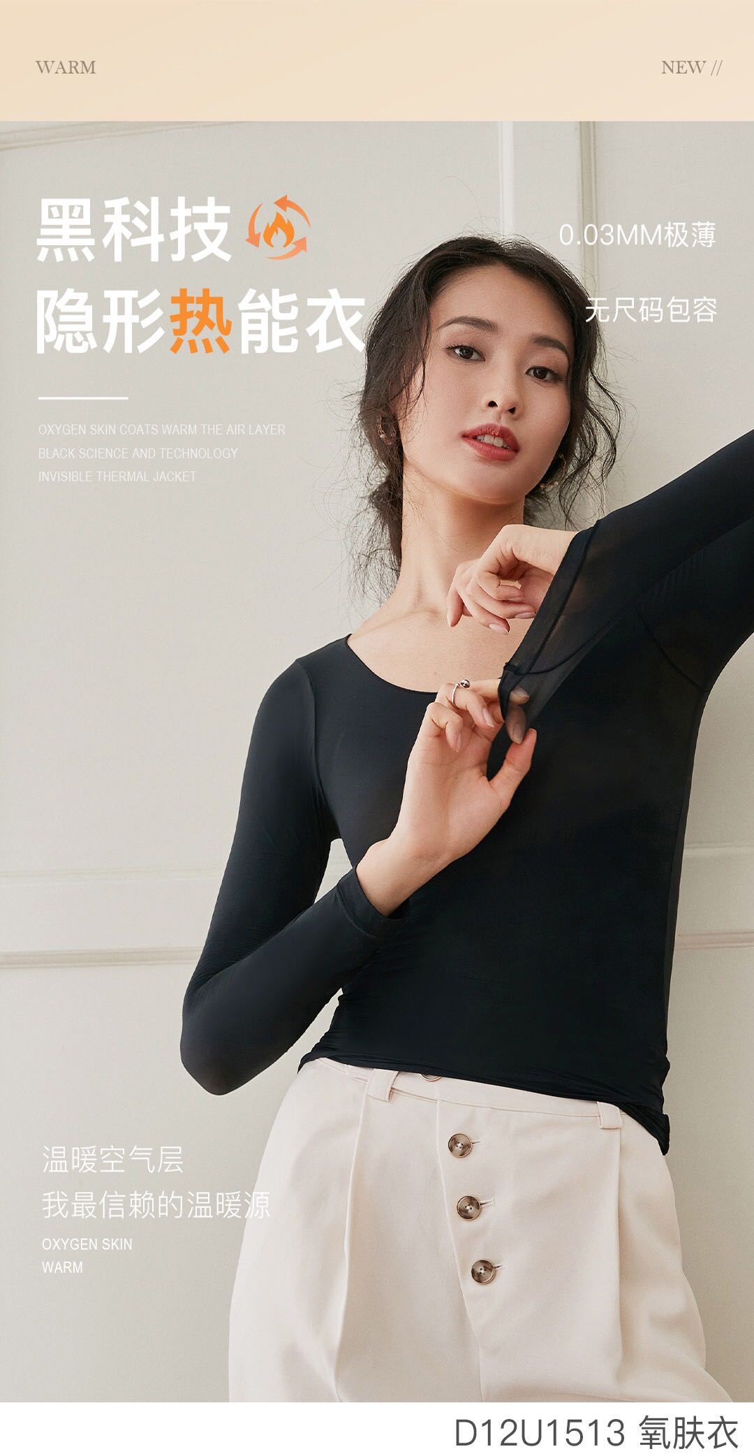 超薄黑科技无尺码隐形热能衣打底衫 氧肤衣皮肤衣