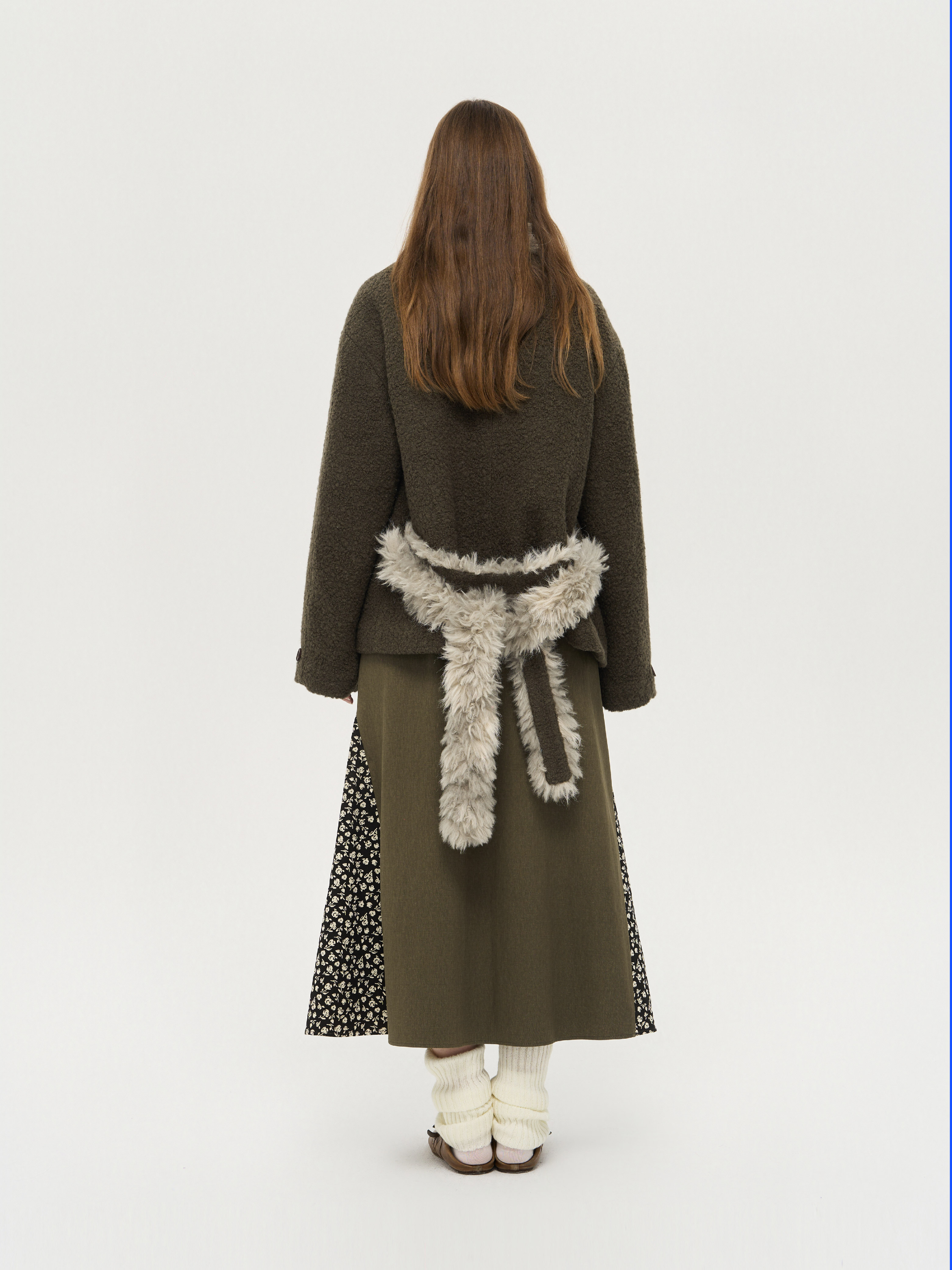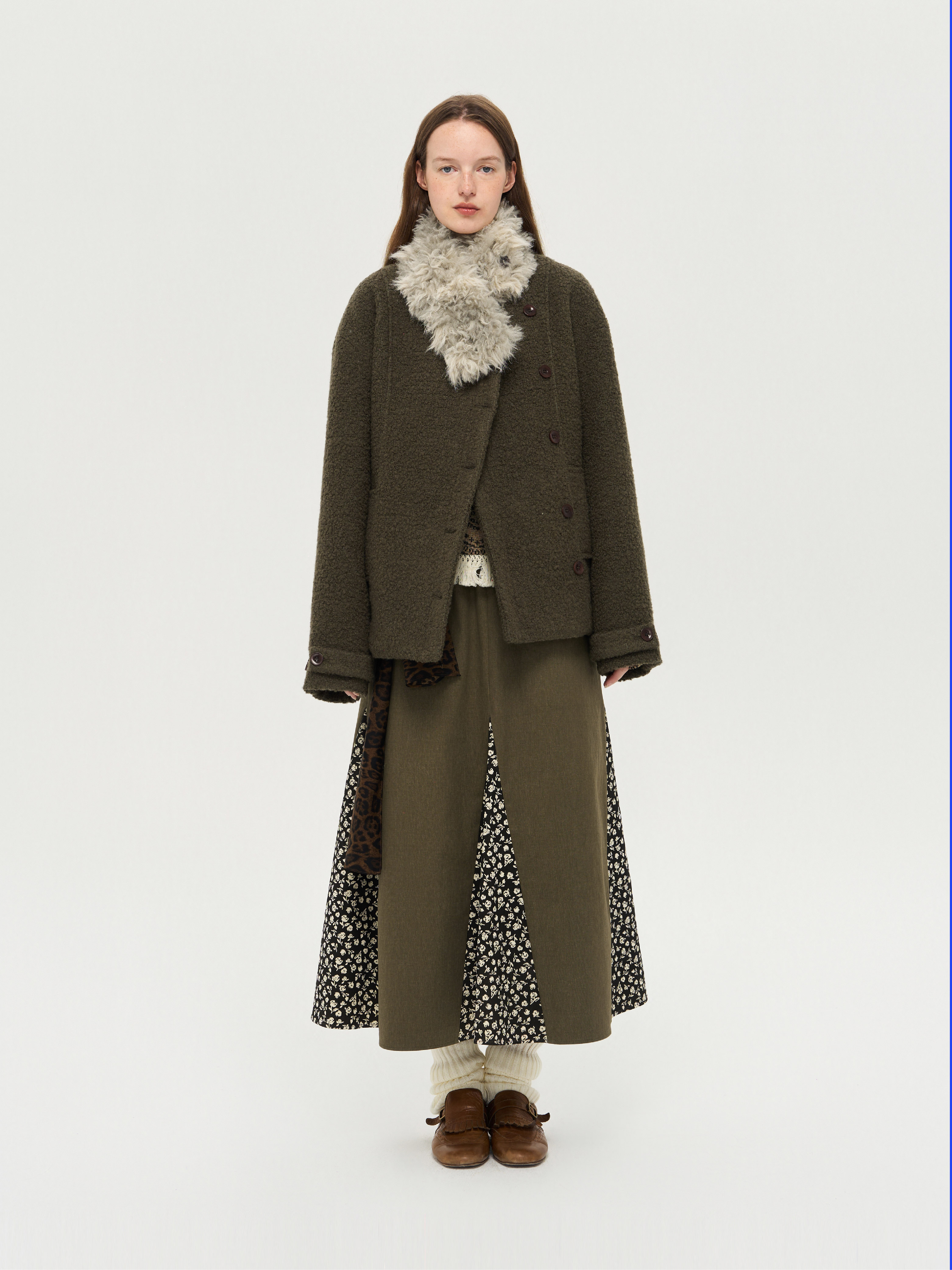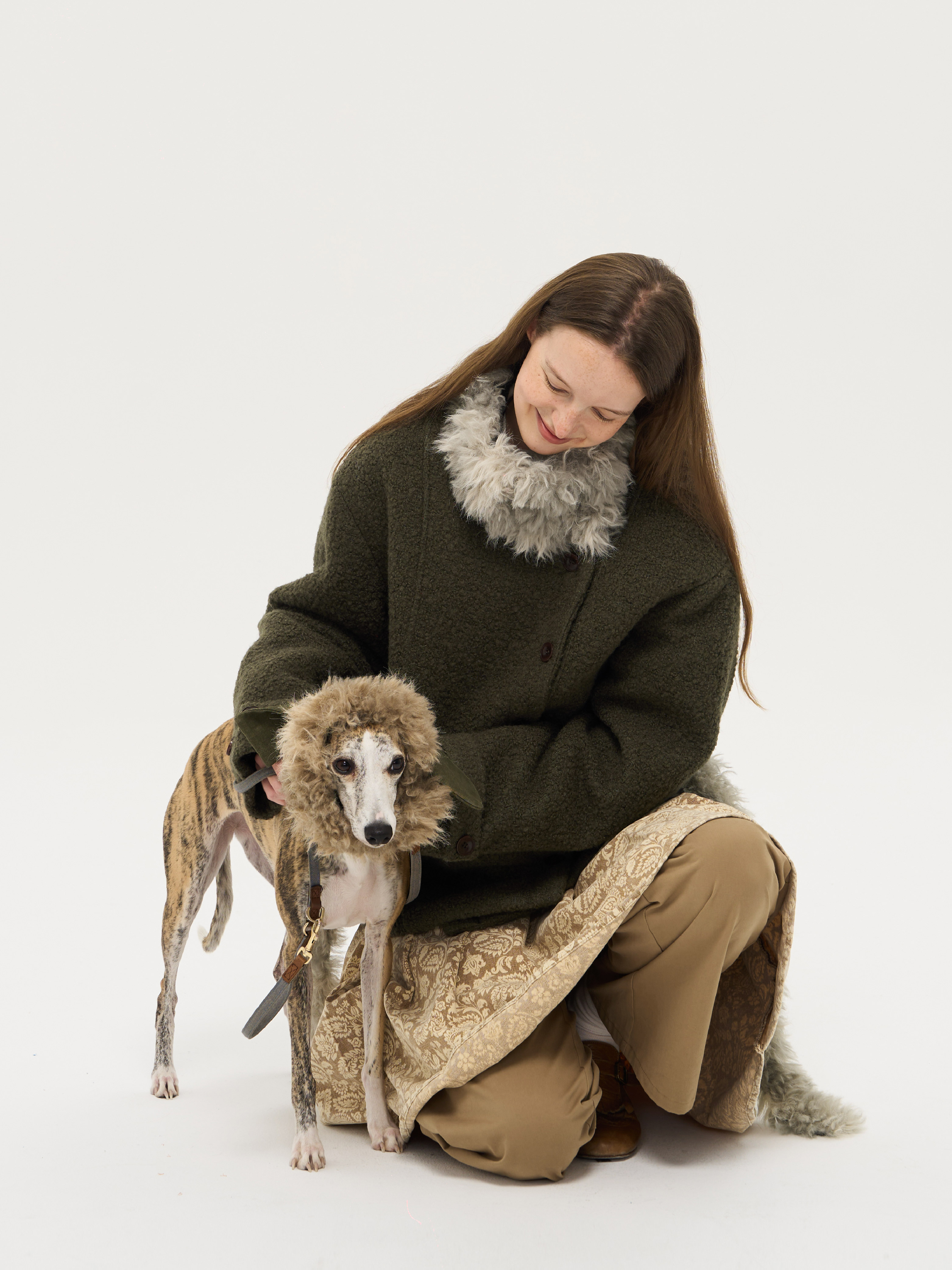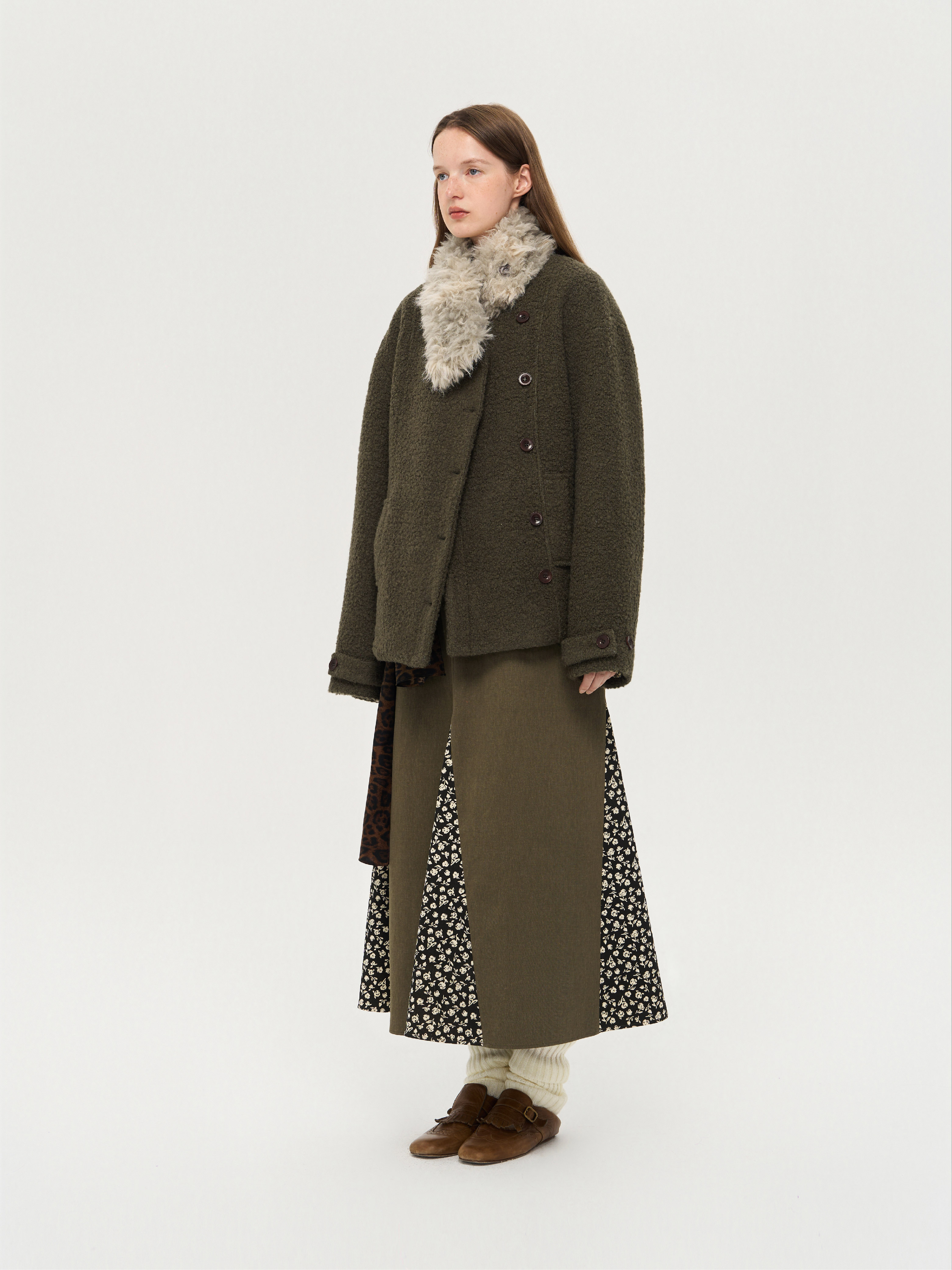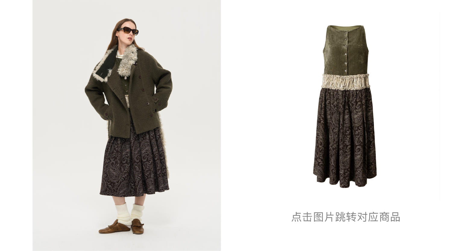 local tag/lt25awk48/冬季西普 慕斯毛领夹棉温暖苔绿含羊毛呢大衣外套