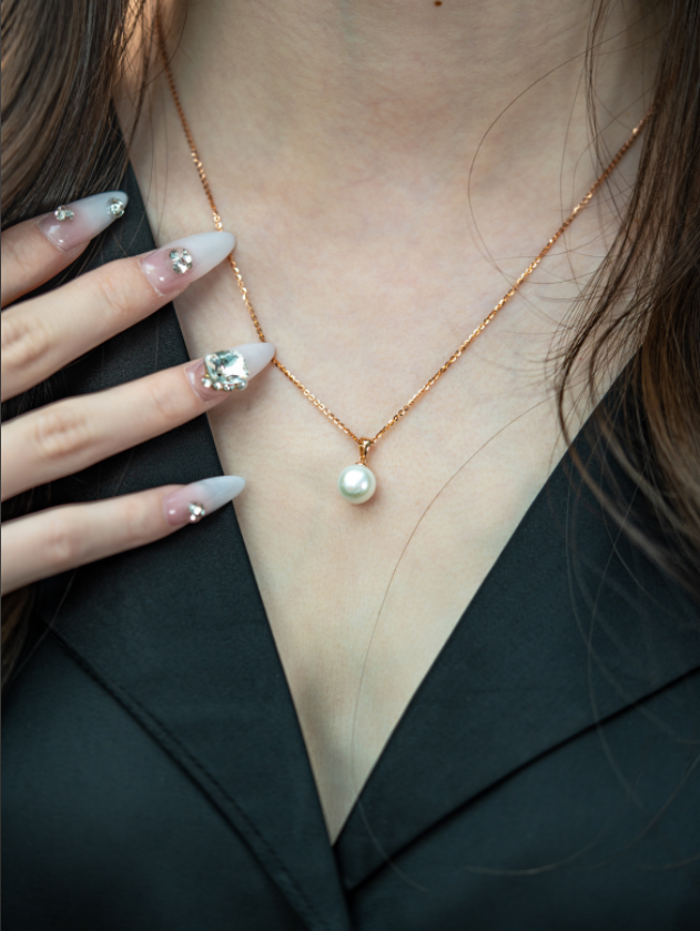 【推荐款】K红玫瑰金珍珠优雅风吊坠 | K金珍珠8.7mm