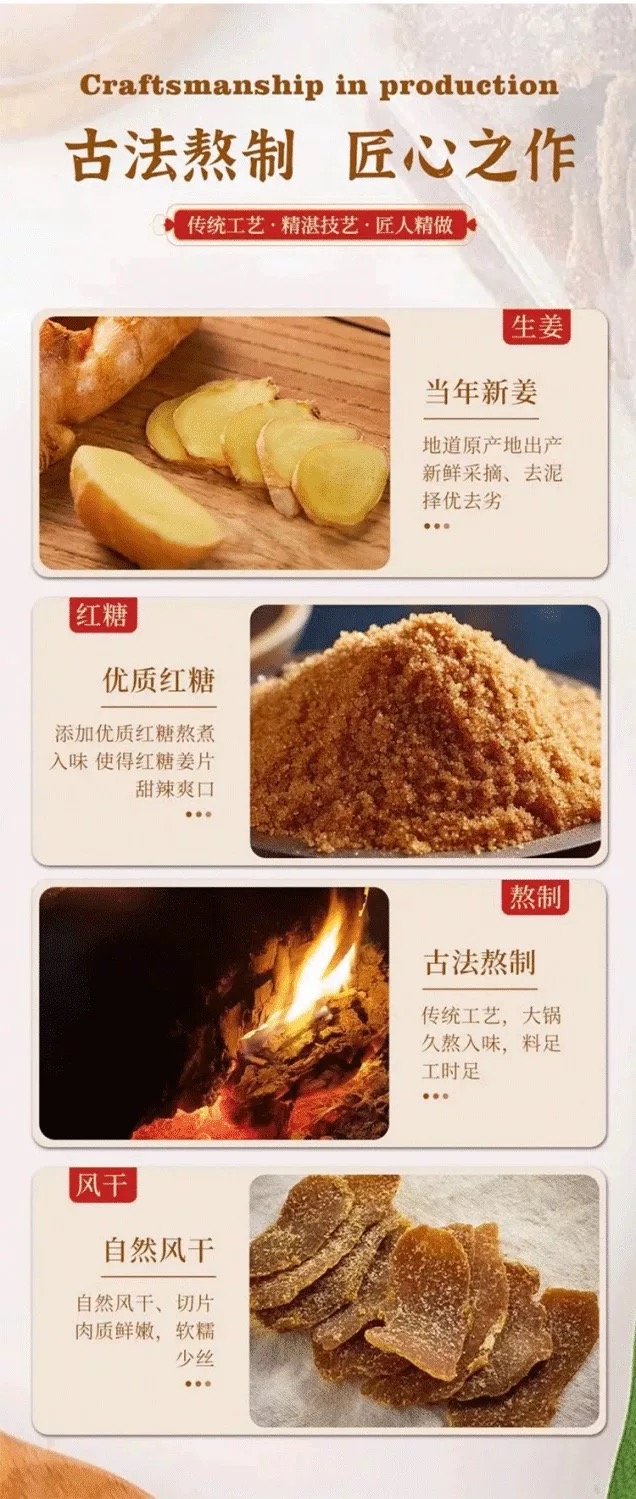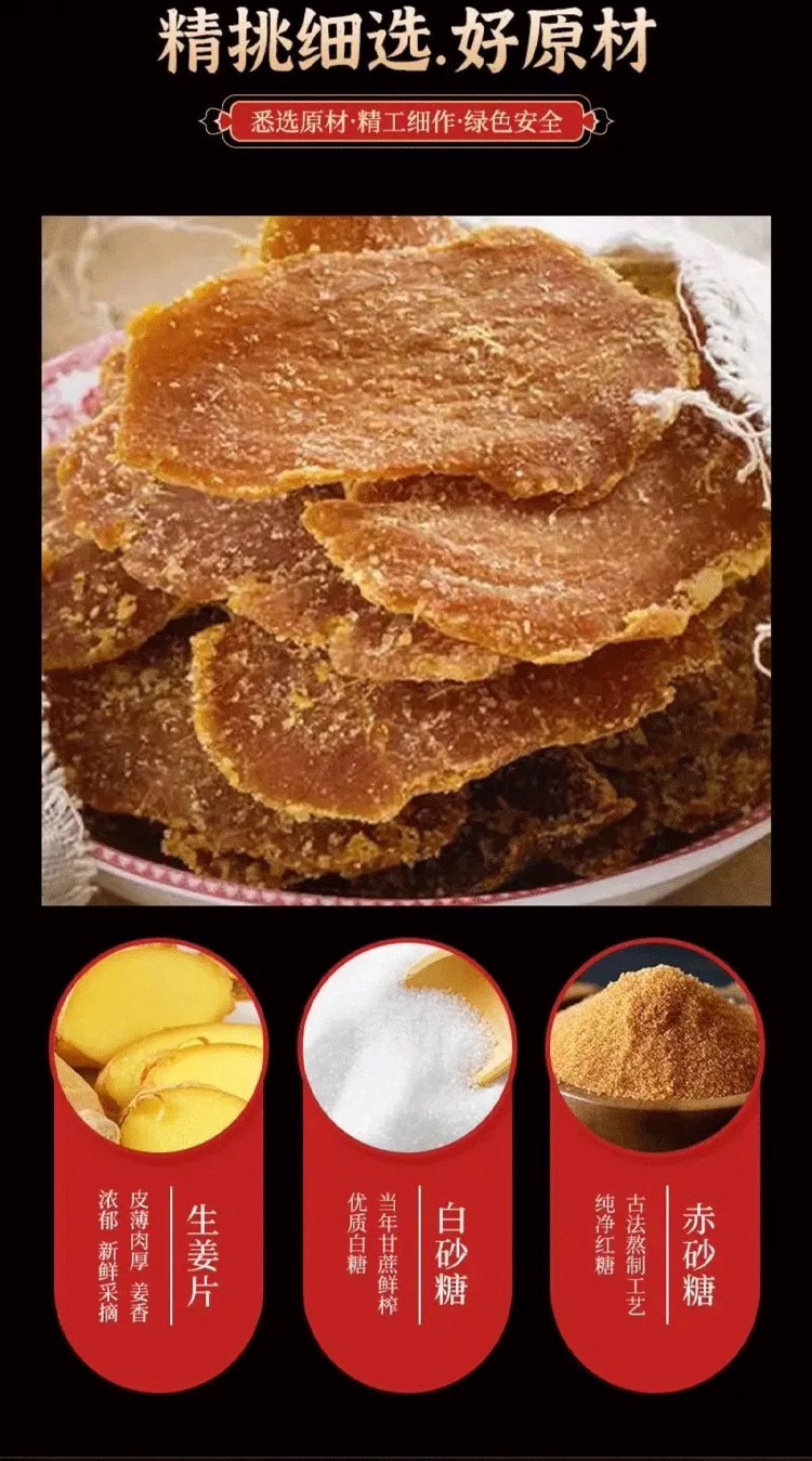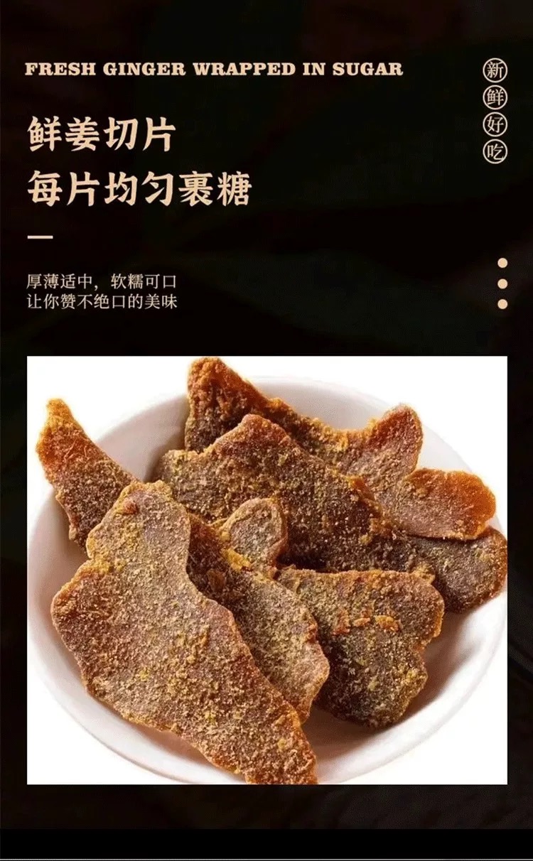 【手工红糖姜片 500克/袋】肉质饱满,鲜嫩无丝,味甜微辣,入口清香醇厚