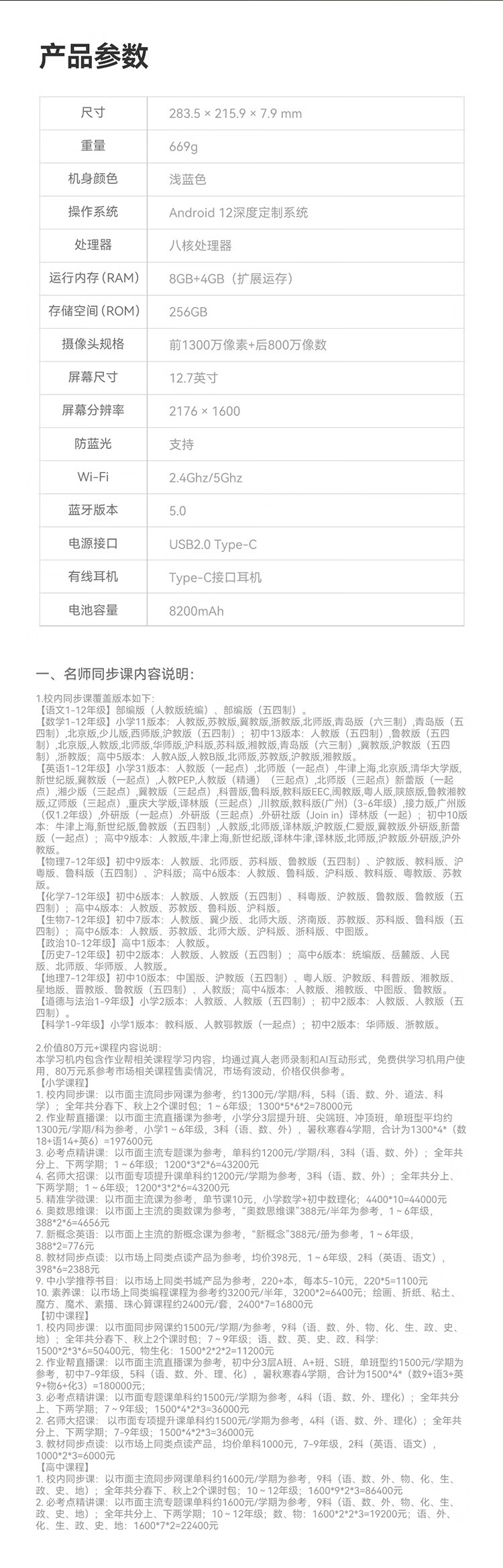 作业帮 学习机 T30A 学练版本 8+256GB(性能版)