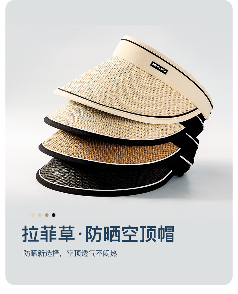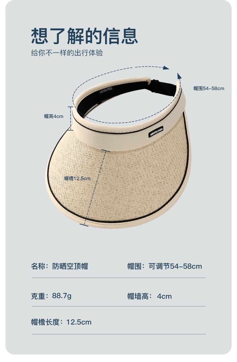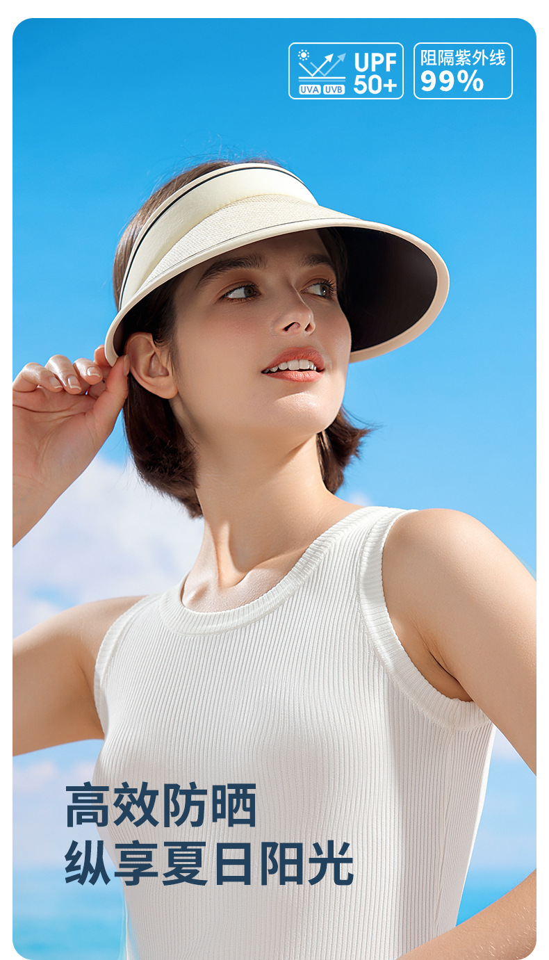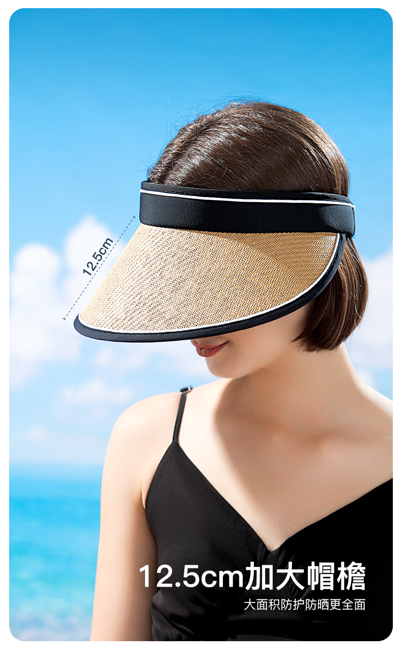 【大帽檐更防晒,可卷收纳】夏季拉菲草防晒空顶帽 防晒UPF50+ 草编+黑胶双层防晒 大帽檐 头围可调 时尚百搭