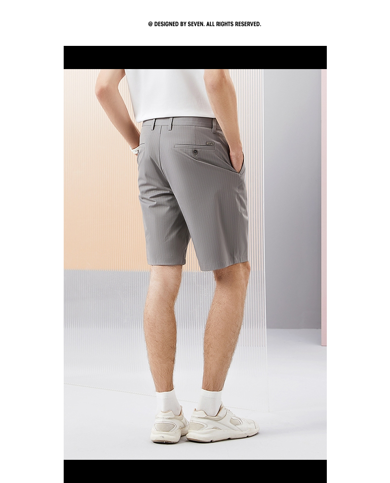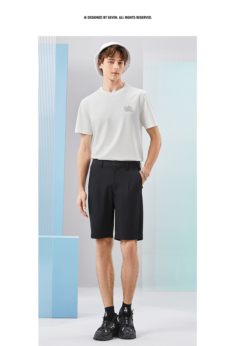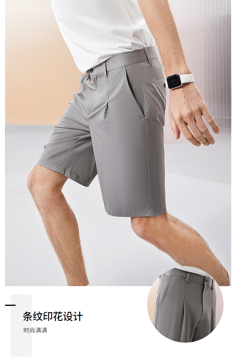 柒牌男装休闲短裤男2024夏季新款时尚潮流中青年条纹印花直筒男裤 126H72930