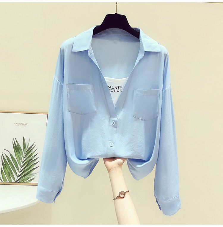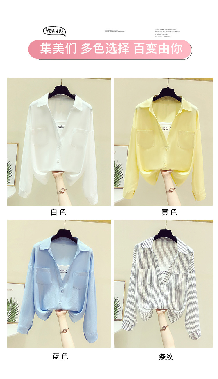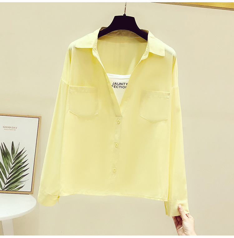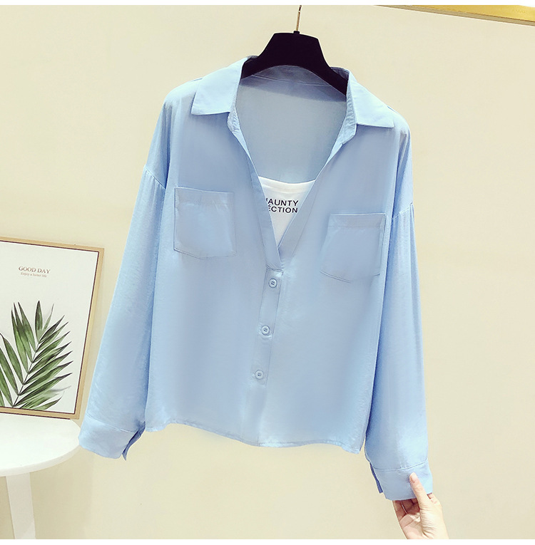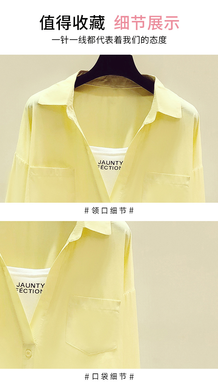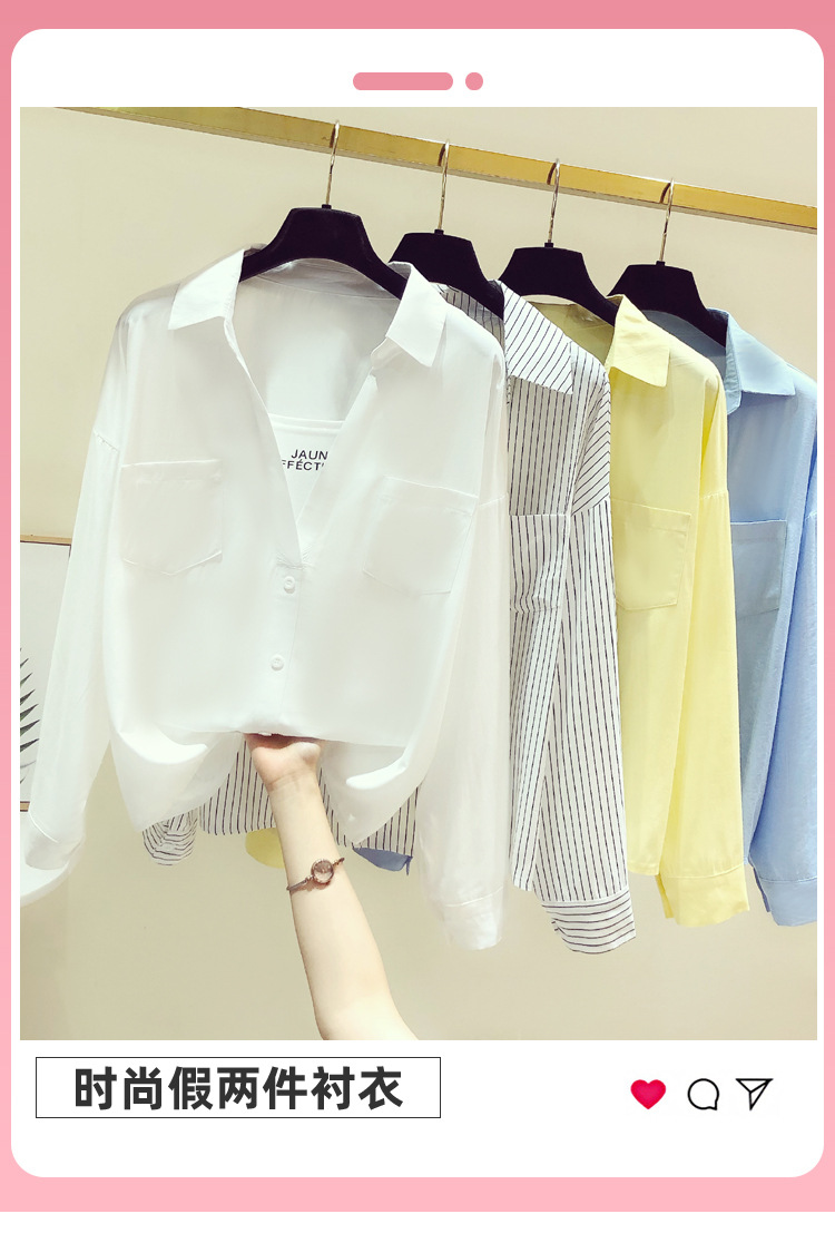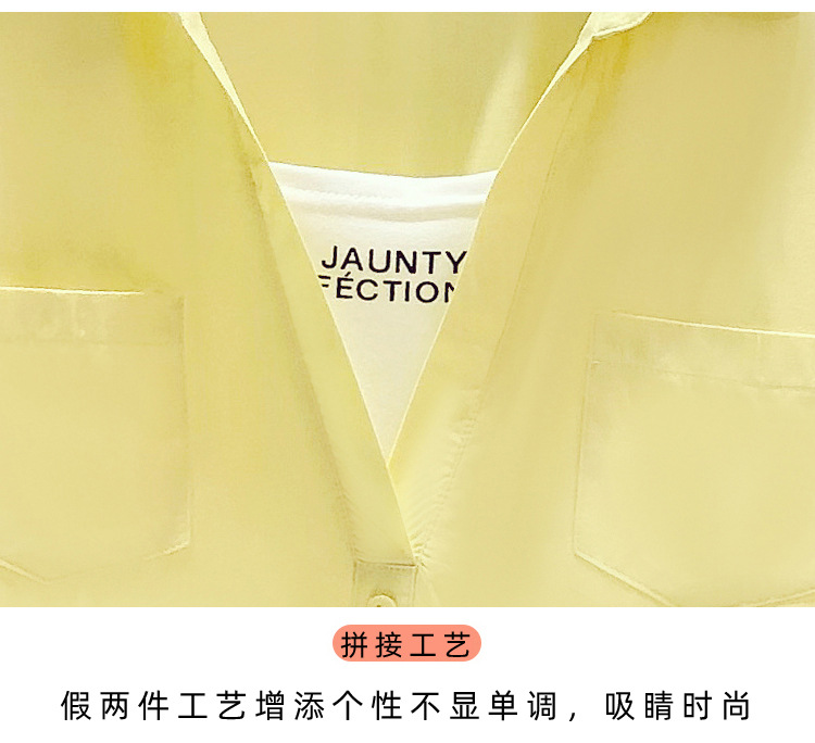 实拍t恤拼接假两件衬衫女春秋装2022年新款百搭显瘦POLO领长袖上衣 YX733