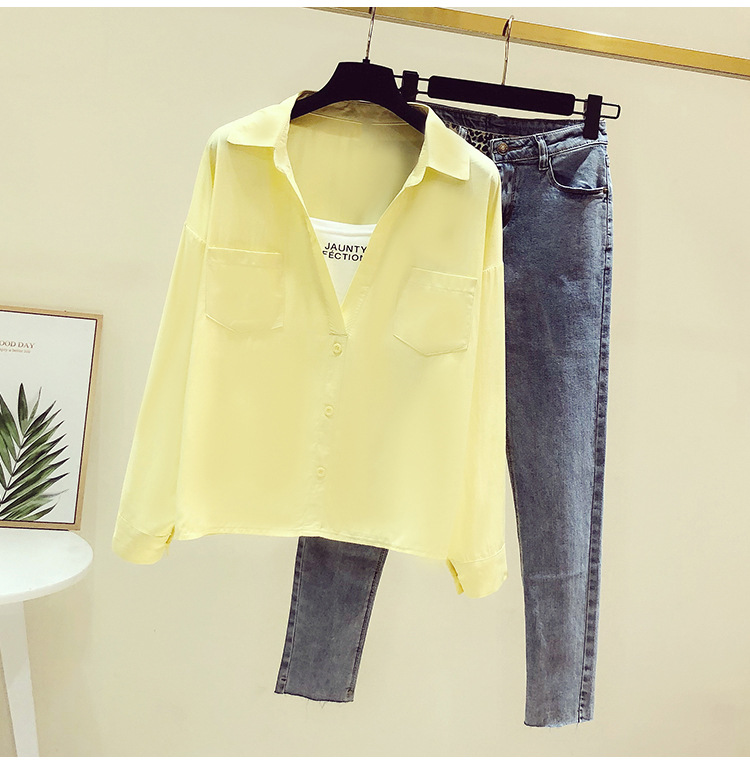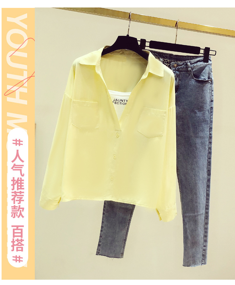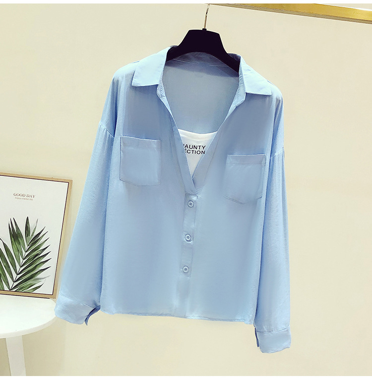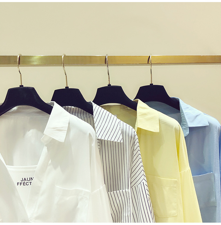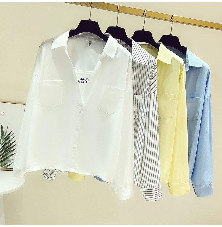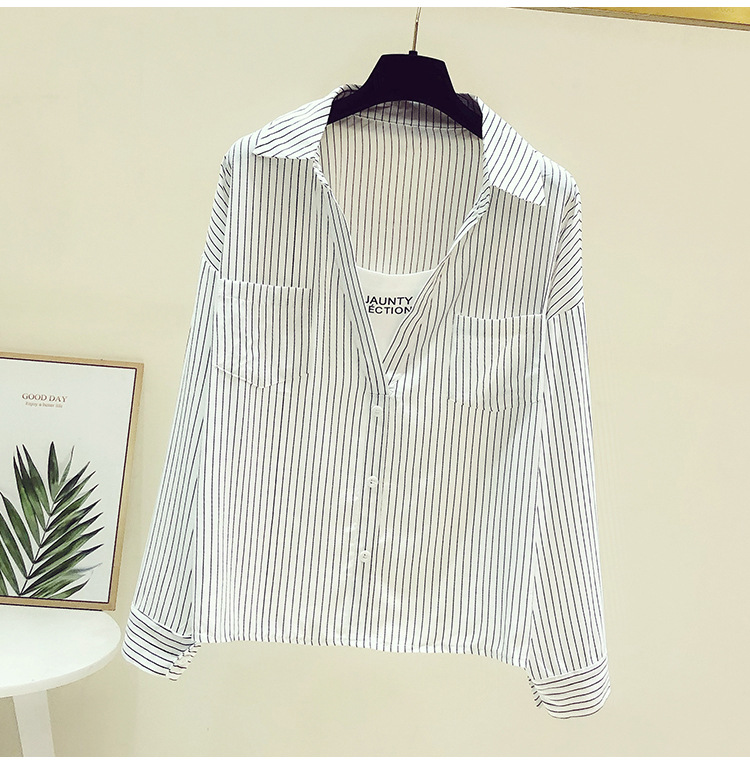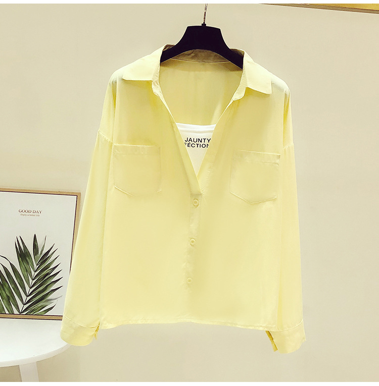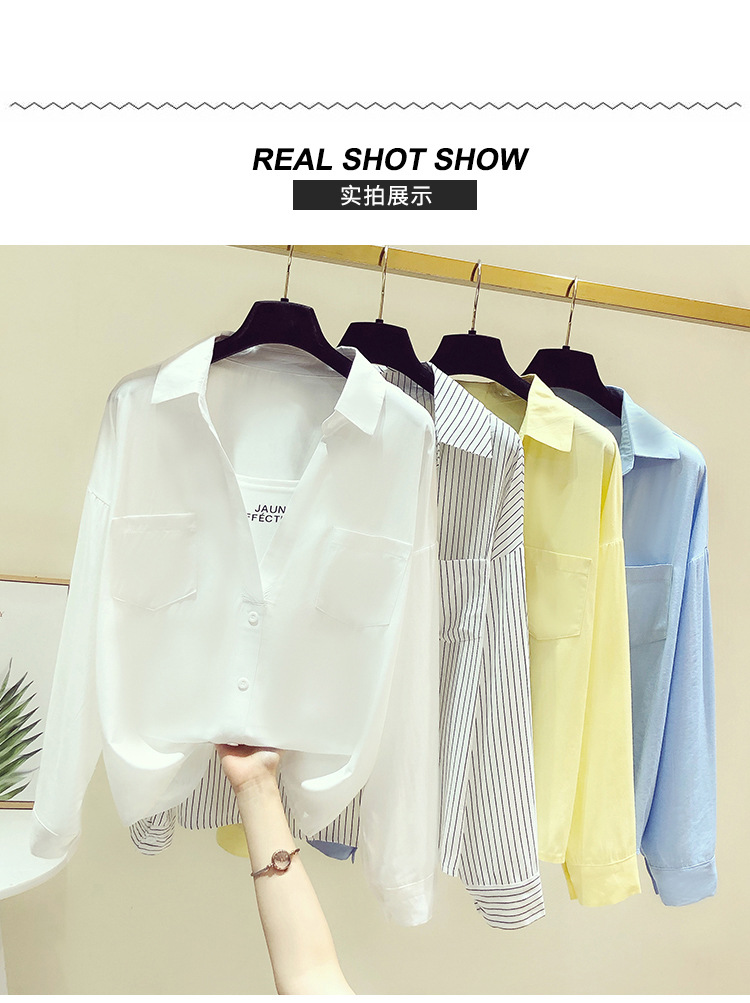 实拍t恤拼接假两件衬衫女春秋装2022年新款百搭显瘦POLO领长袖上衣 YX733