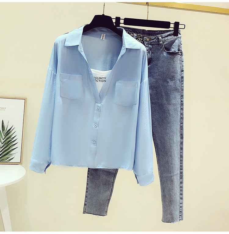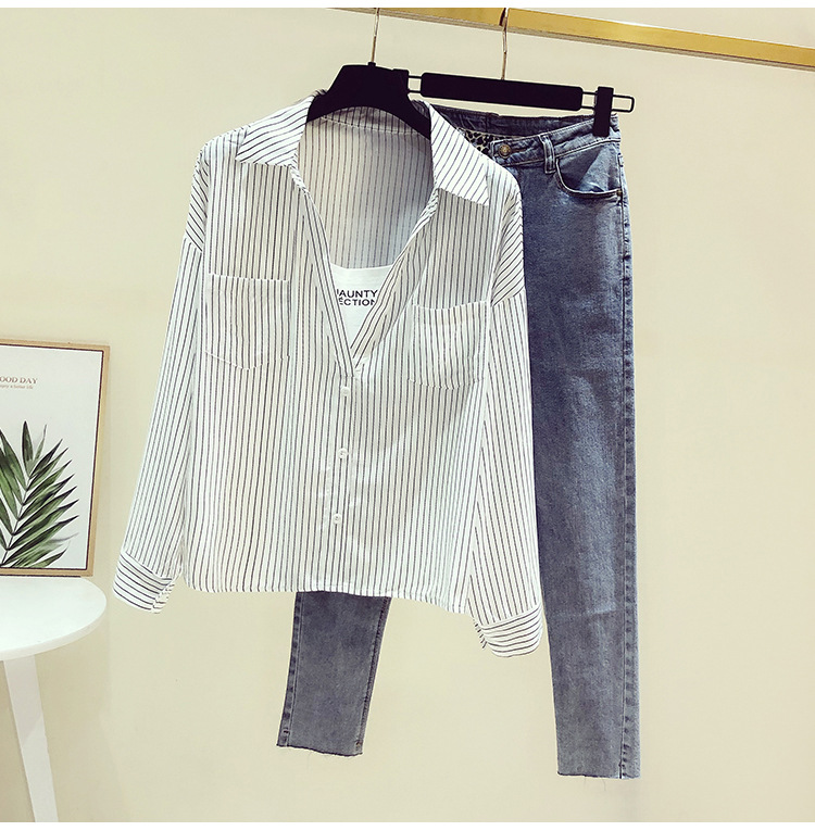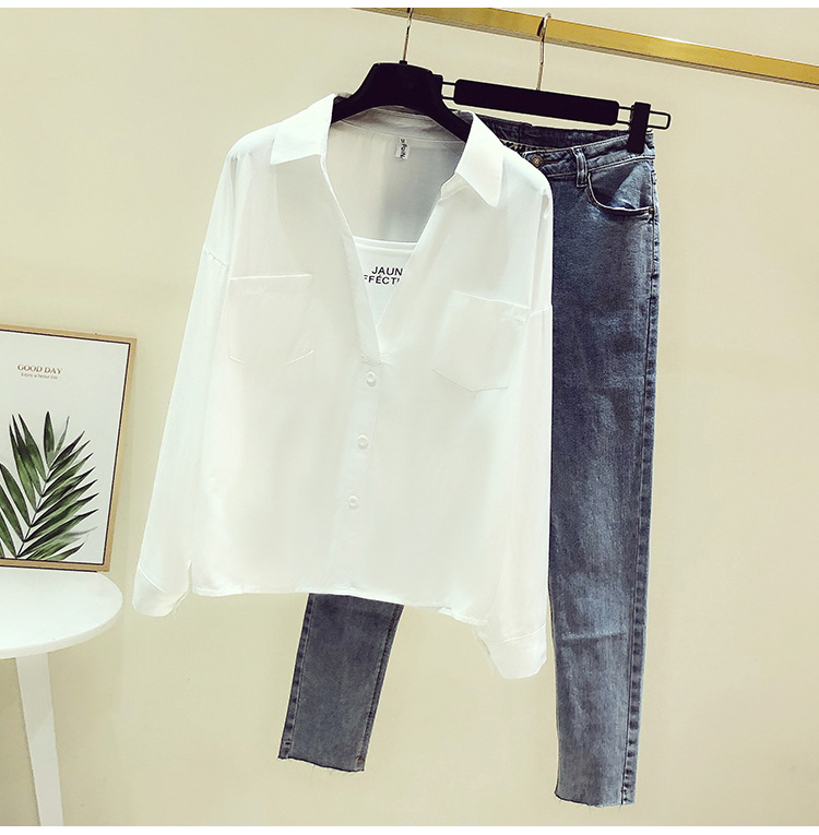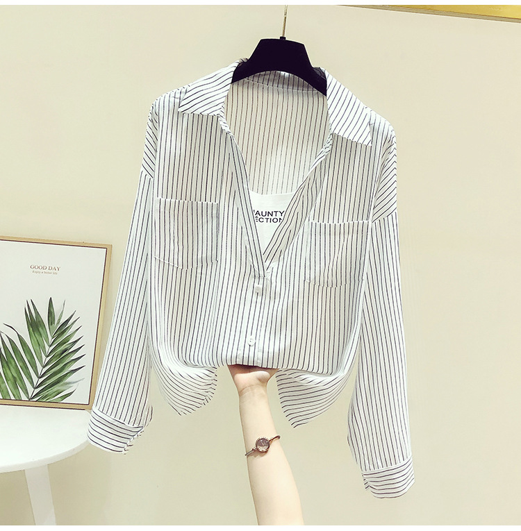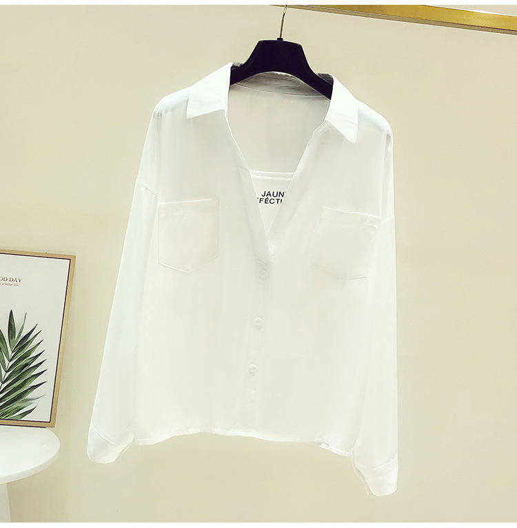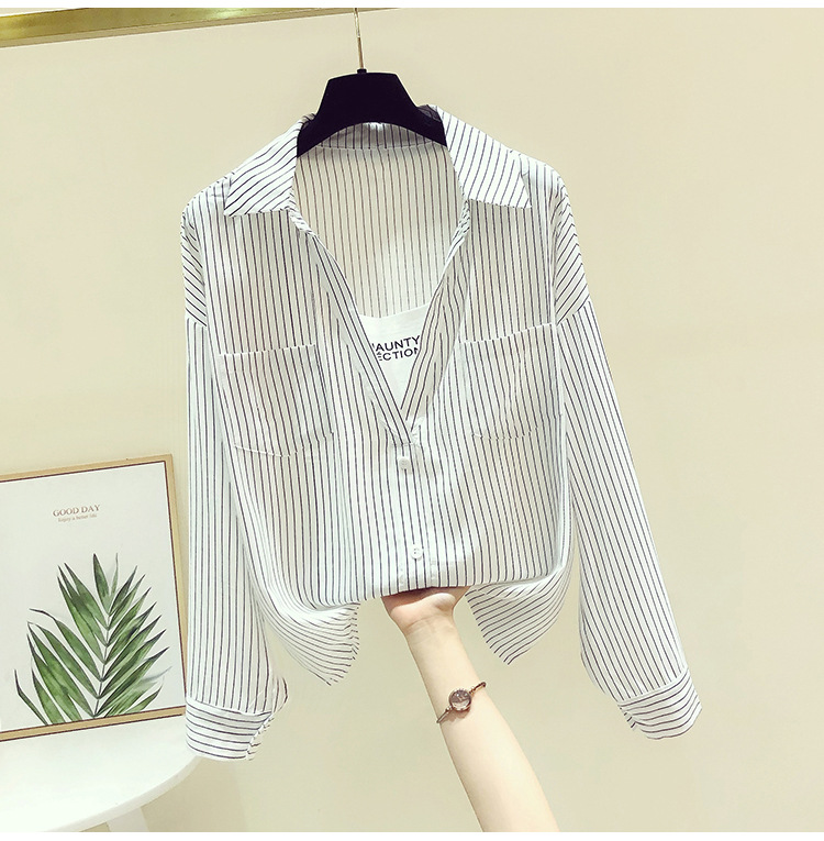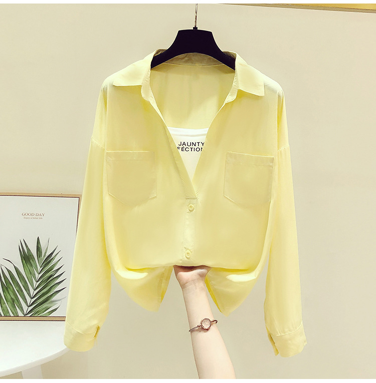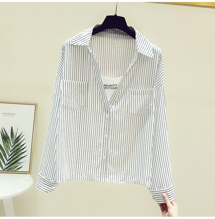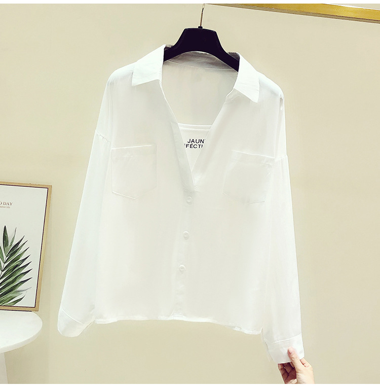 实拍t恤拼接假两件衬衫女春秋装2022年新款百搭显瘦POLO领长袖上衣 YX733